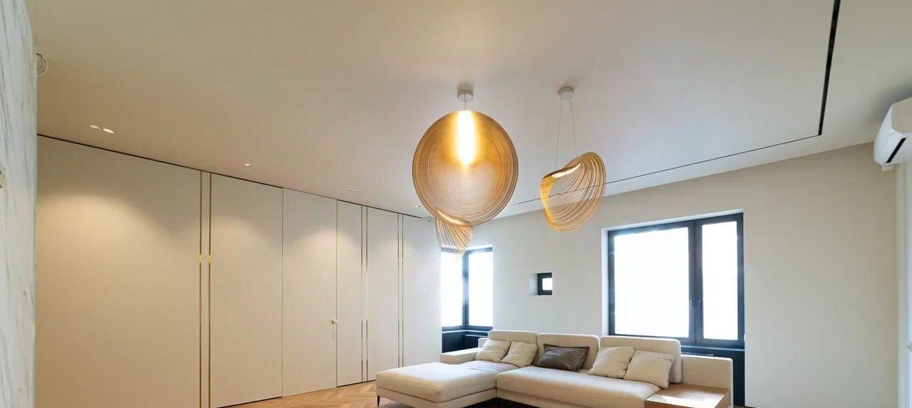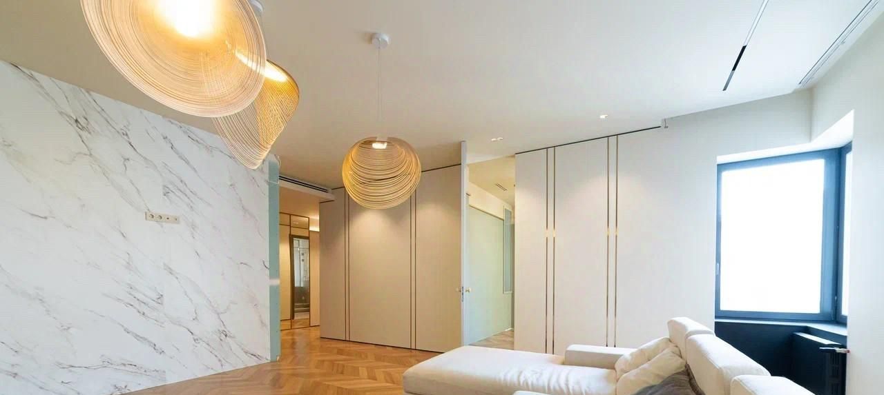 В квартире произведен новый дизайнерский ремонт. Использованы сложные архитектурные решения и дорогостоящие материалы: