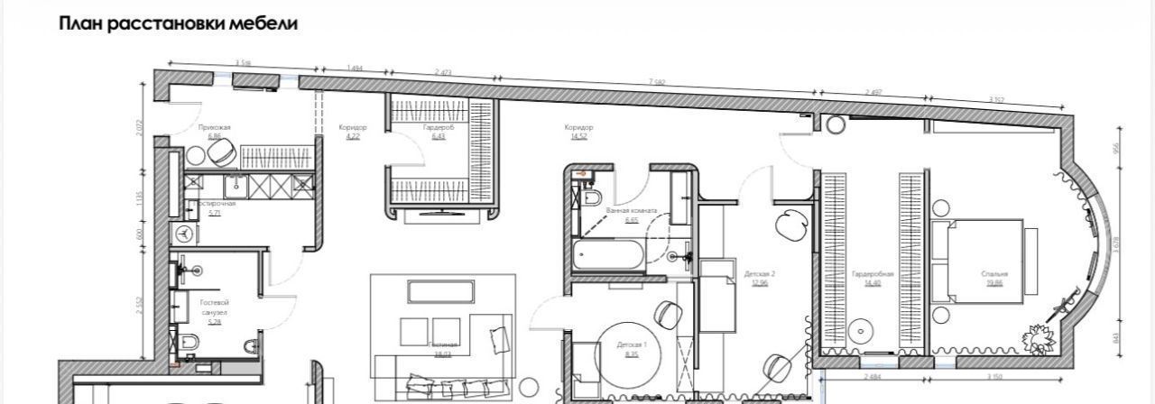 • Приватный блок: спальня с индивидуальной гардеробной с окном, две светлые детские (одну из которых при необходимости легко трансформировать в кабинет).