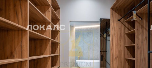 Мастер спальня с собственной гардеробной ведущей к сан узлу с отдельностоящий ванной.