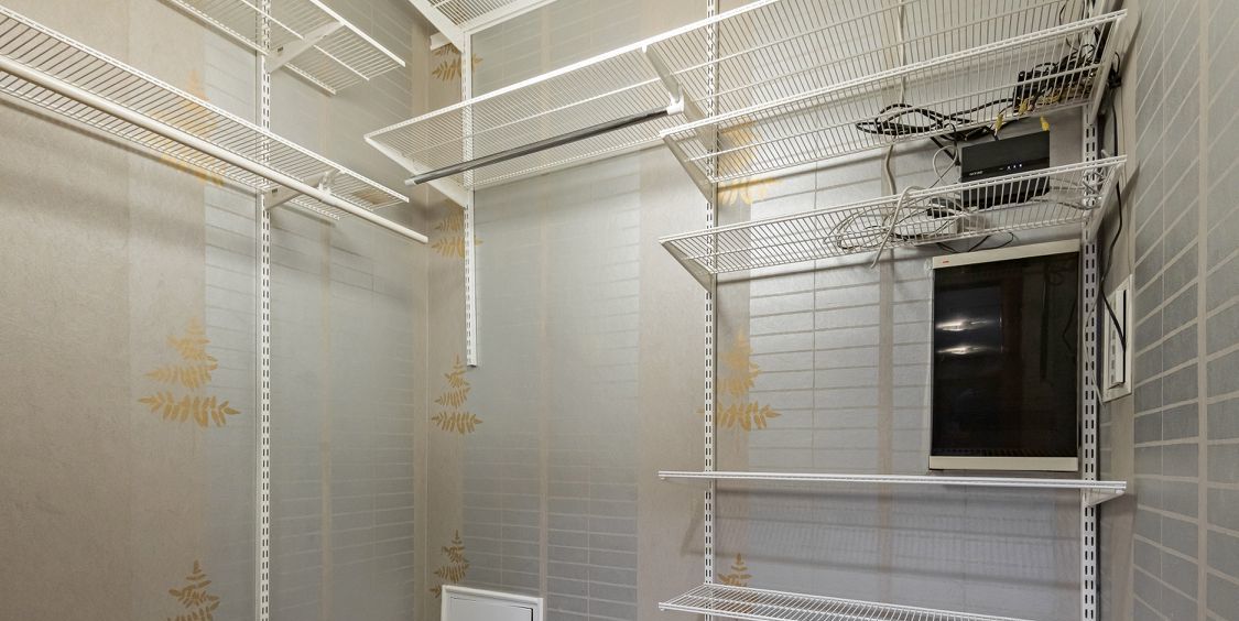 Функциональная планировка предусматривает большое количество мест для хранения, а также отдельную гардеробную комнату, что особенно важно для комфортной жизни.