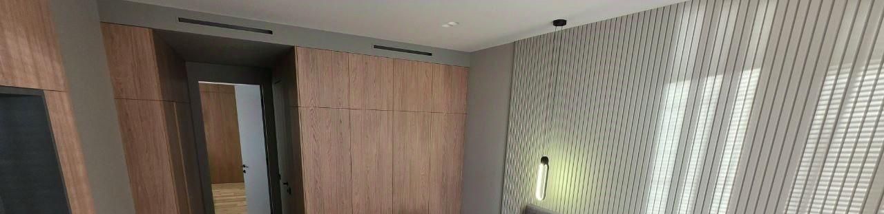 Просторная планировка и премиальная отделка. Квартира отличается тщательно продуманной рациональной планировкой. Использованы отделочные материалы высокого качества, установлена техника премиум-класса и современные инженерные системы, включая принудительную вентиляцию с очисткой воздуха (Tion) в каждой комнате. Входная смарт дверь. Автоматические шторы в гостиной и мастер-спальне. Много мест для хранения.
