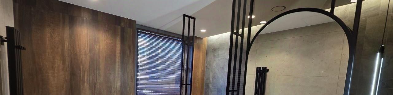 - Мастер-спальня с панорамным остеклением на две стороны, встроенным шкафом, отдельной гардеробной и выдвижным проектором. Собственный санузел с ванной, душем и окнами (улицу и спальню, с жалюзи).