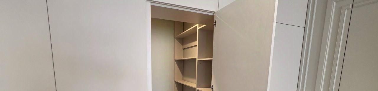 - Комната для хранения оборудована стеллажами.