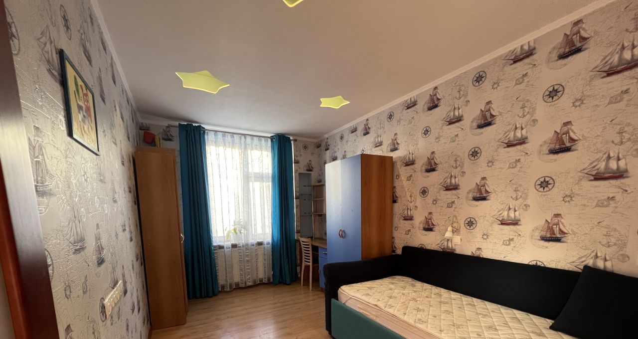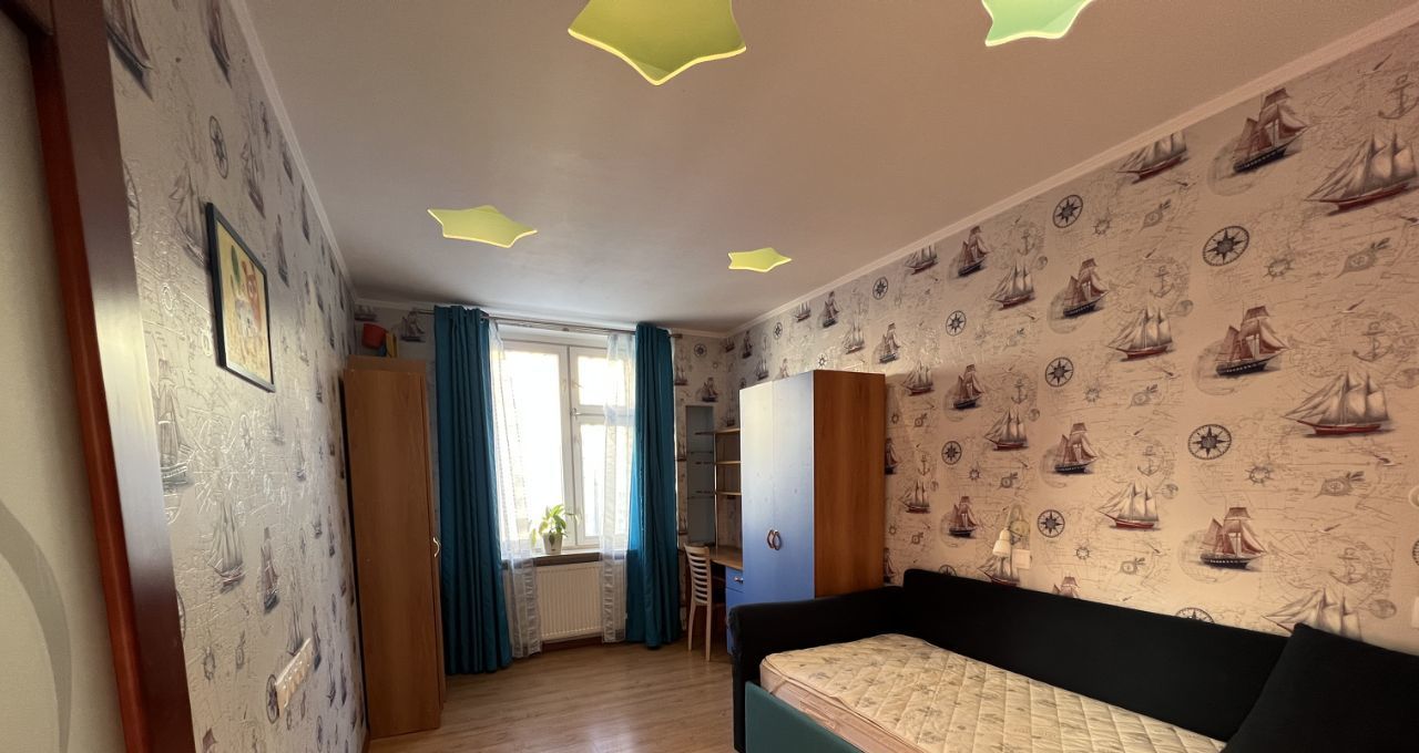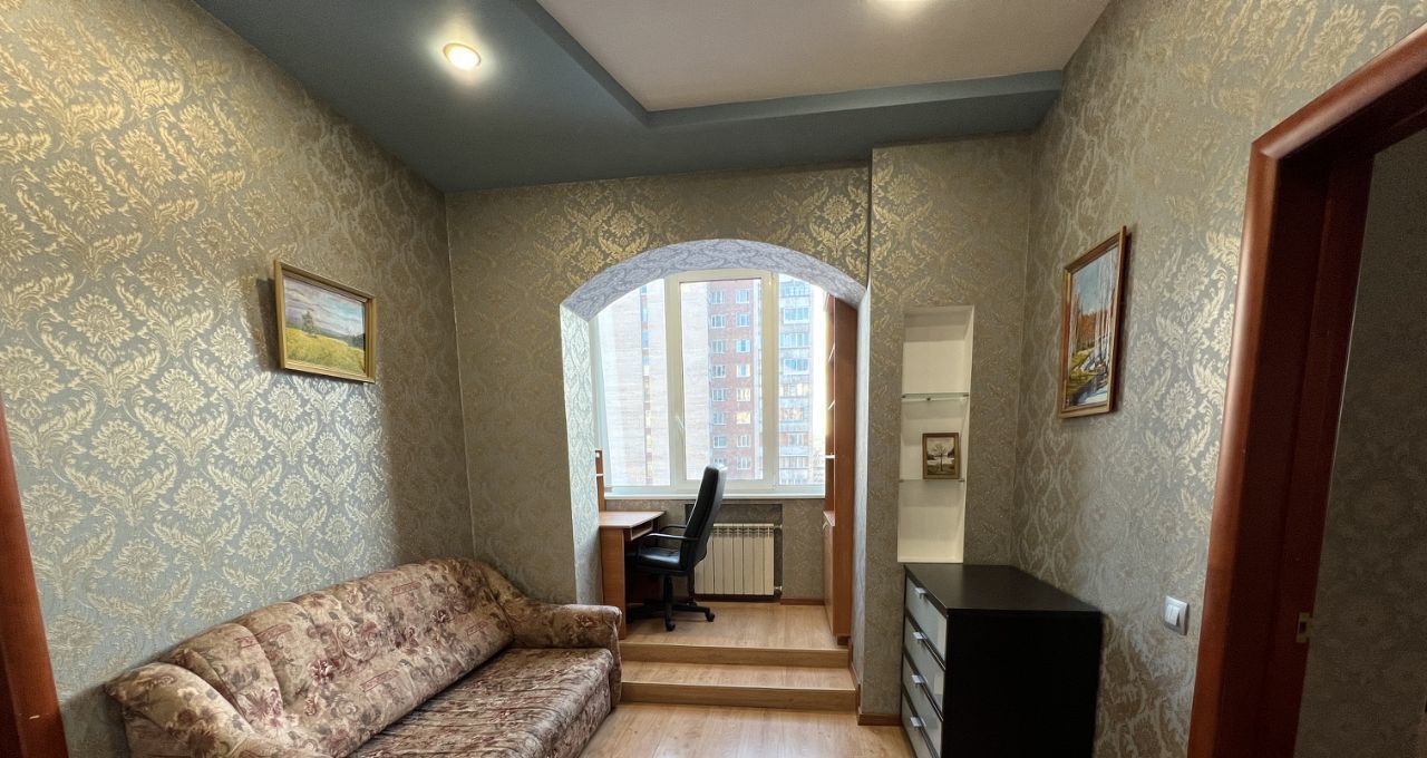 Изолированные комнаты - гостиная, спальня, две детских. Оборудовано пространство под кабинет. Высокие потолки 3 метра. Выход из кухни на лоджию.