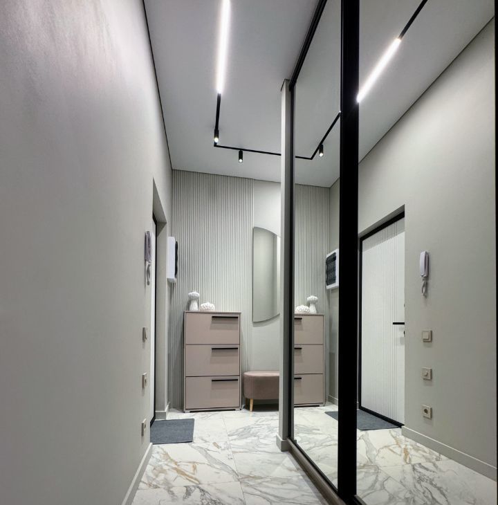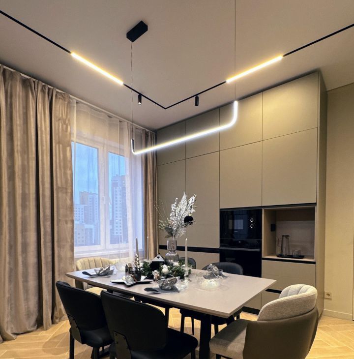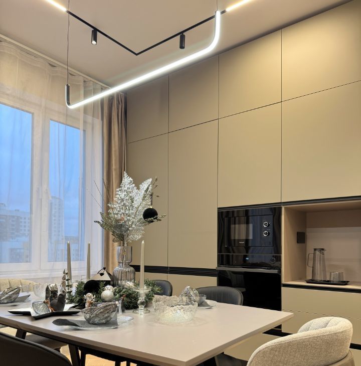 - Современная встроенная кухня (Встроенная Посудомоечная Машина, Варочная Панель, Встроенный Духовой шкаф, Встроенный Холодильник, Вытяжка, Встроенная СВЧ)