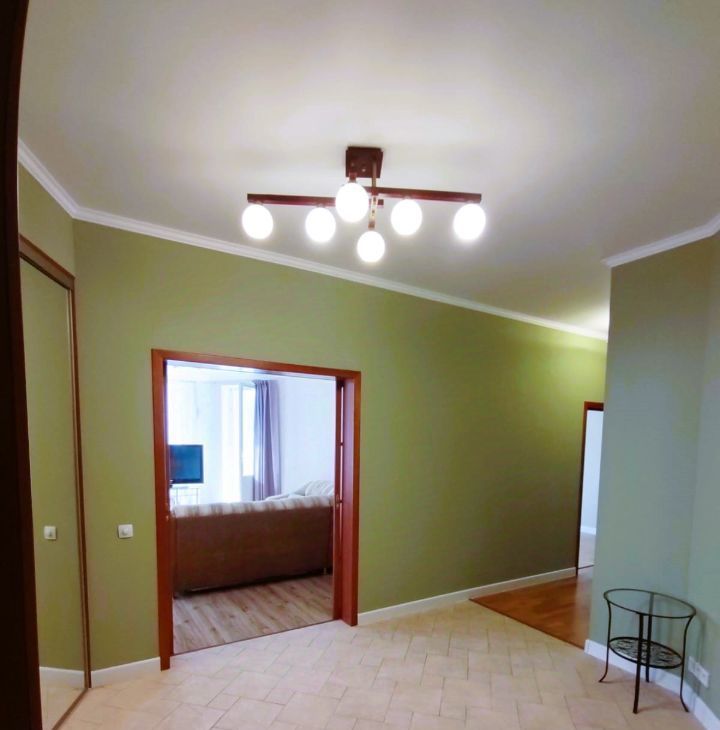 Квартира укомплектована всем необходимым для комфортного проживания. Просторная гостиная с выходом на лоджию, кухня, три изолированные комнаты, гардеробная, раздельный санузел, сауна. Охраняемый благоустроенный двор, консьерж, гостевая стоянка. Есть подземный паркинг.