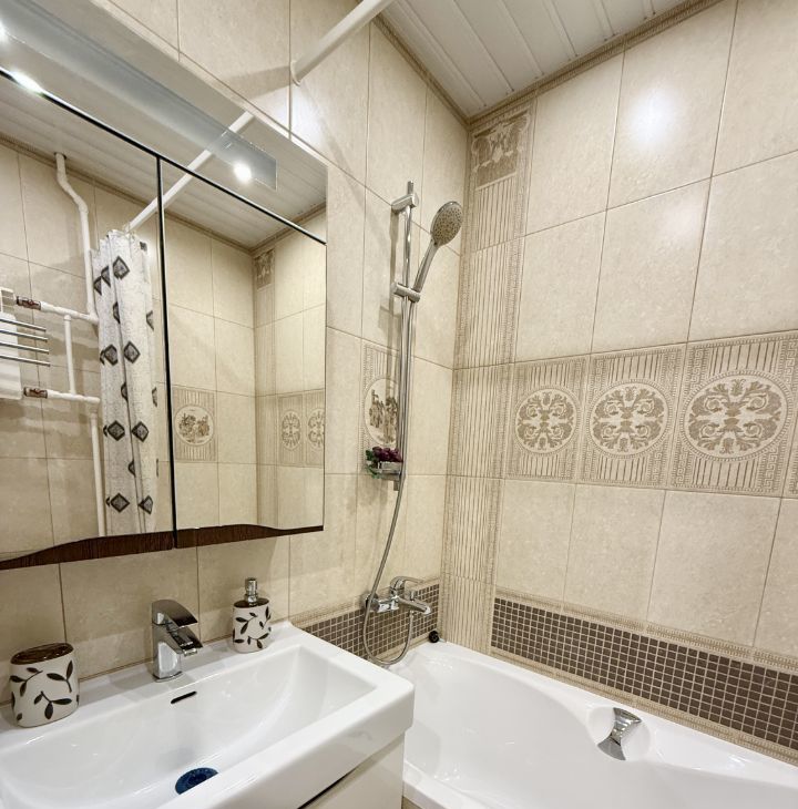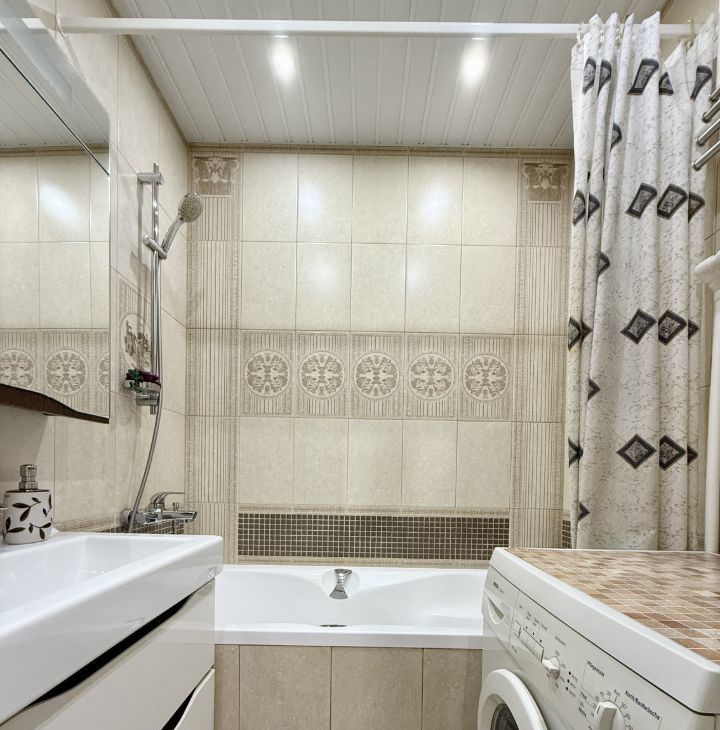 — санузел раздельный, качественная ВАННА, стиральная машина-автомат; ЦЕНТРАЛЬНОЕ водоснабжение (нет газовой колонки), хороший напор воды; в туалете - пол с подогревом;
