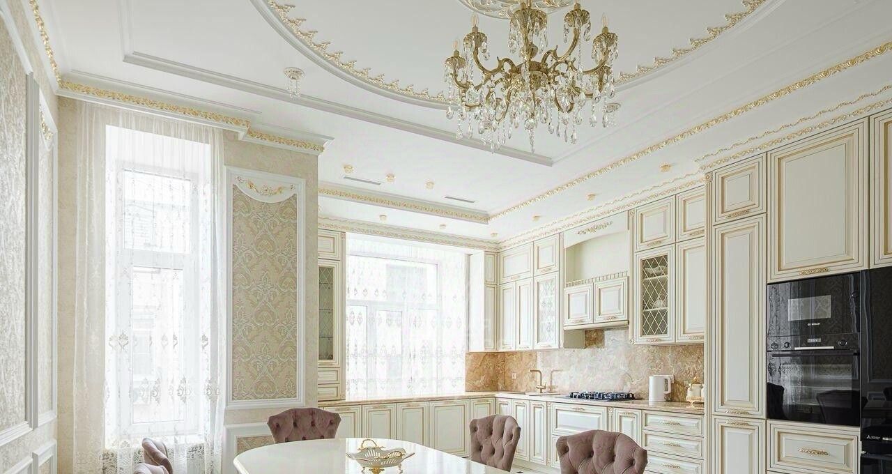 Мраморные полы, лепнина ручной работы и золотая отделка придают помещению исключительную роскошь и элегантность.
