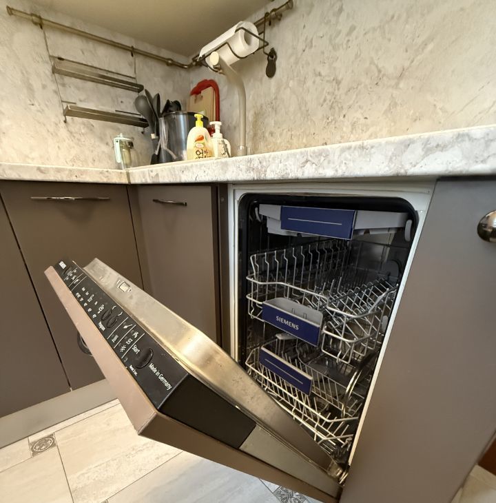 Техника: холодильник Bosch, посудомоечная машина, стиральная машина, духовой шкаф электрический, варочная панель газ - Siemens.