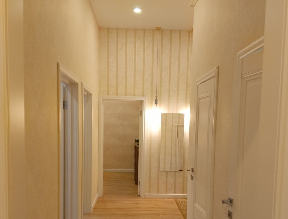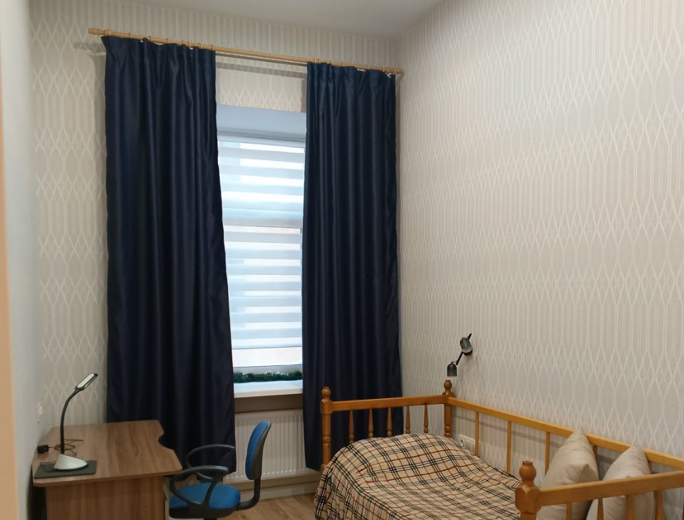 Предлагаем в аренду 4-комнатную квартиру с ремонтом. Фотографии, к сожалению, не передают ощущения чистоты и свежести. Приходите и вам захочется остаться. Общая площадь составляет 77.3 кв. м, из которых три изолированные спальни 10+10+11 кв.м., кухня/гостиная 25 кв. м. Раздельный санузел и хозяйственная комната , которая может служить гардеробной. Квартира расположена на 3м этаже 8-этажного кирпичного дома с высокими потолками 3.5 метра. До метро всего 5 минут пешком, что удобно для ежедневных поездок.