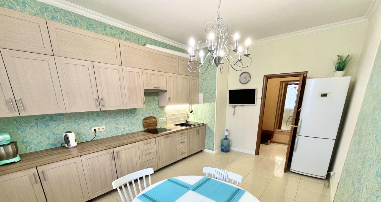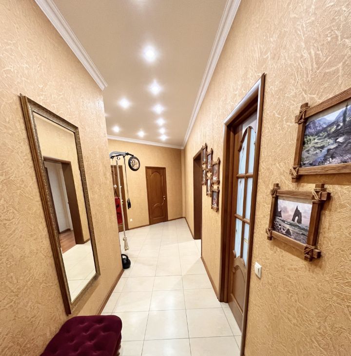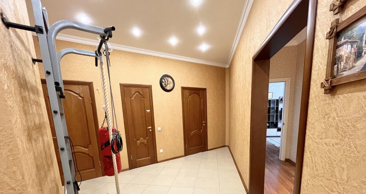 О квартире: Квартира имеет площадь 116,1кв.м и 4 жилые комнаты. Подойдёт большой семье. Изолированные комнаты 20,7кв.м, 15кв.м, комнату в 37кв.м разделили на гостиную и детскую. Просторная кухня почти 17кв.м, где поместится с комфортом не только Ваша семья, но и Ваши родные и близкие. Высота потолков 3 метра! Полы с подогревом на кухне, в коридоре и сан.узлах. Был сделан качественный ремонт с использованием дорогих материалов, в квартире просто приятно находится. Есть вся необходимая техника для проживания - холодильник, эл. плита, посудомоечная машина, 2 телевизора, стиральная машина, чайник. Есть даже спортивный уголок в коридоре!
