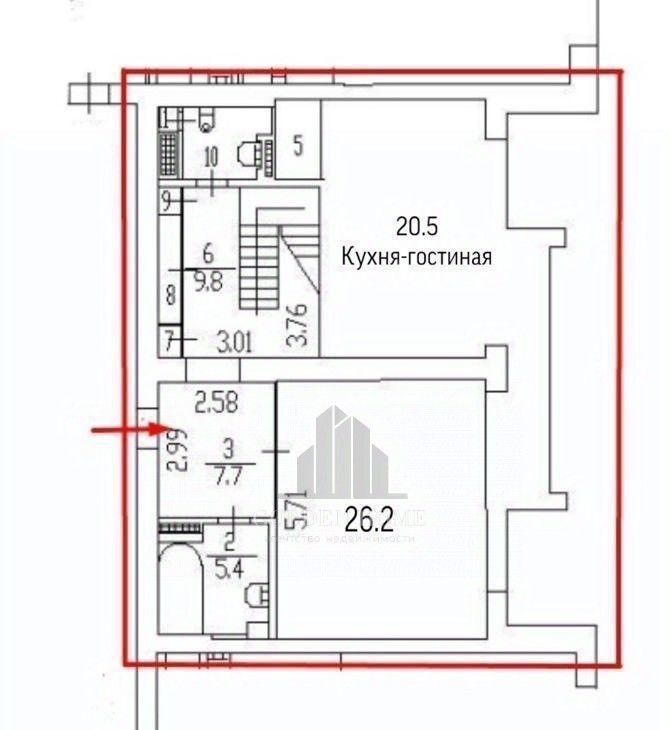 • Один совмещенный С/У 5.4 м² и один раздельный.
