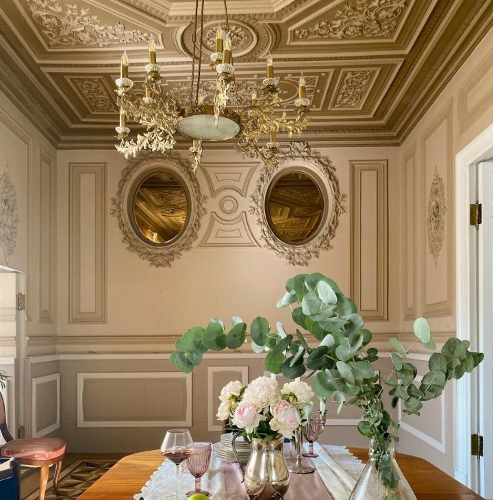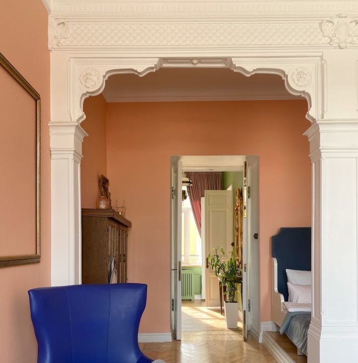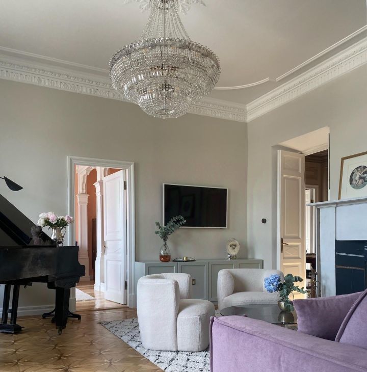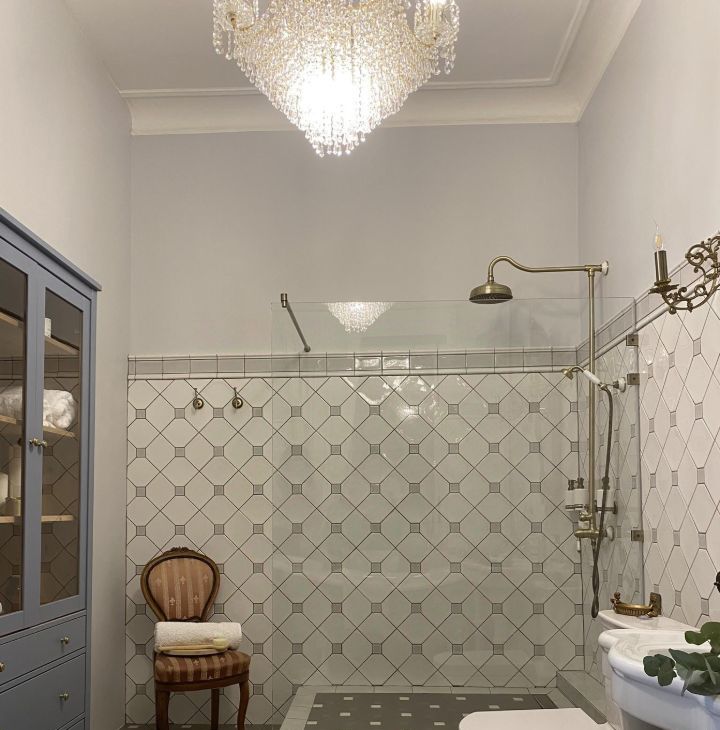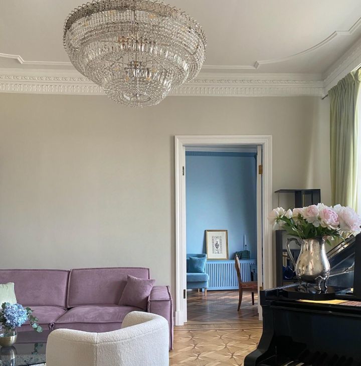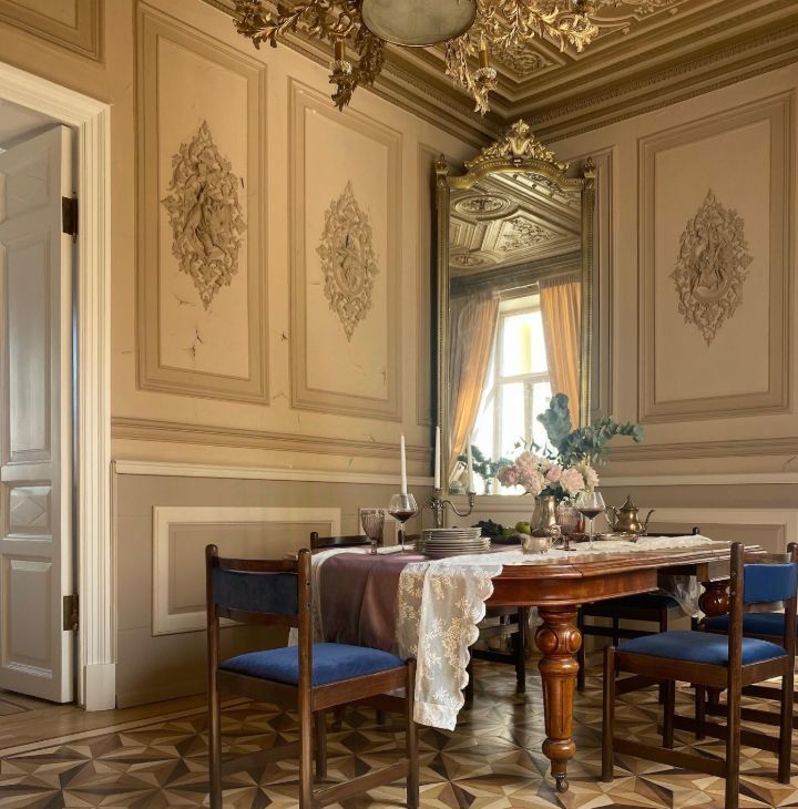 В квартире выполнена реставрация сохранившихся интерьеров по сохранившимся эскизам, произведён качественный ремонт. Сохранены и бережно восстановлены старинная лепнина потолков и стен, настенные панели, наборный паркет полов. Сохранена историческая планировка. В вашем распоряжении будут светлая прихожая, великолепная столовая с изящными лепными картушами, зеркальными медальонами в световых окнах; гостиная с действующим камином и роялем К.М.Шрёдера времён постройки дома и парадная комната свободного назначения, которая может быть вашим кабинетом или уголком отдыха. Интерьеры дополняет уютная спальня с балконом и отдельным санузлом, где есть французская ванная и душевая на выбор. В бывших в XIX веке служебных местах квартиры сейчас гостевой санузел и кухня по последнему слову техники от умной стиральной машины до тостера и чайного сервиза.