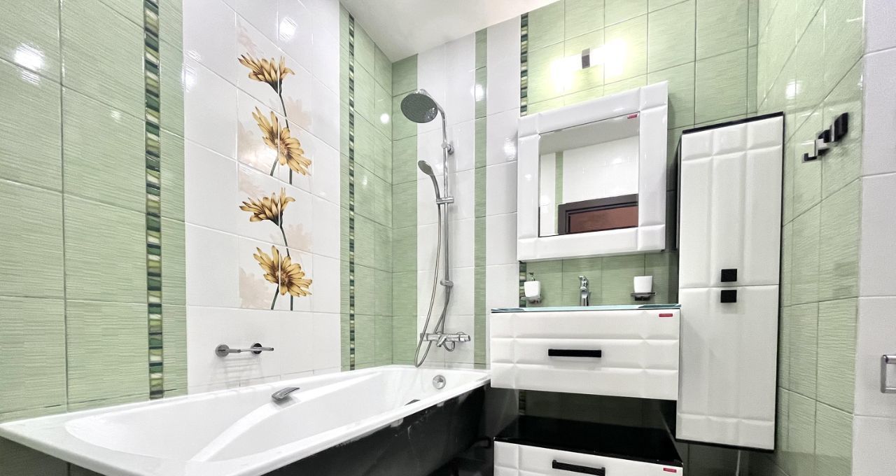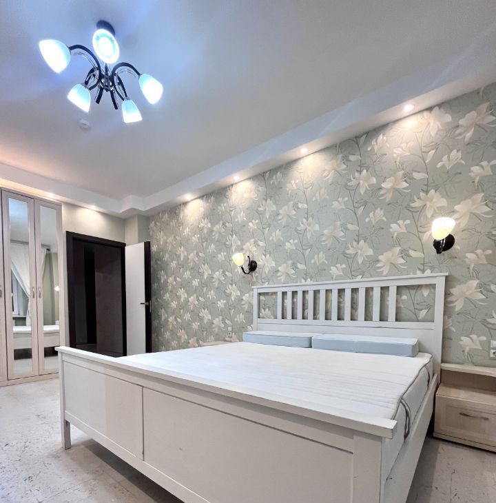 В квартире есть всё самое необходимое для комфортной жизни ( большая кухня, плита, вытяжка, холодильник, посудомоечная машина, СВЧ, духовой шкаф, телевизор, большая кровать, два дивана, места хранения одежды, два санузла, ванна и душ, бойлер, балкон )
