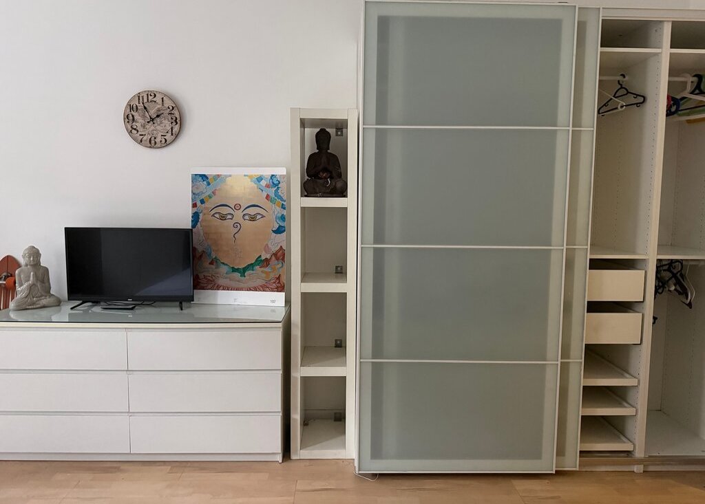 Вся мебель икеа, большой шкаф пакс, три комода, рабочая зона!) очень красивое бескаркасное кресло, кровать новая, 200*200, матрас ортопедический!