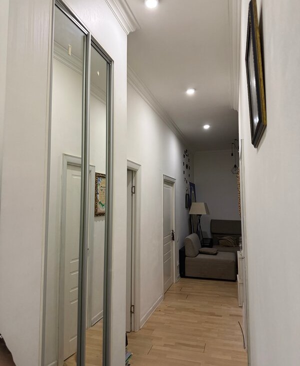 В коридоре 2 больших нишевых шкафа(зеркальные, обувница икеа.