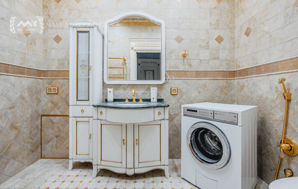 Вживую квартира очень комфортная, во всём ощущается роскошь, что характерно для этого стиля интерьера. Итальянские натуральные материалы и бренды, мрамор, позолота.
