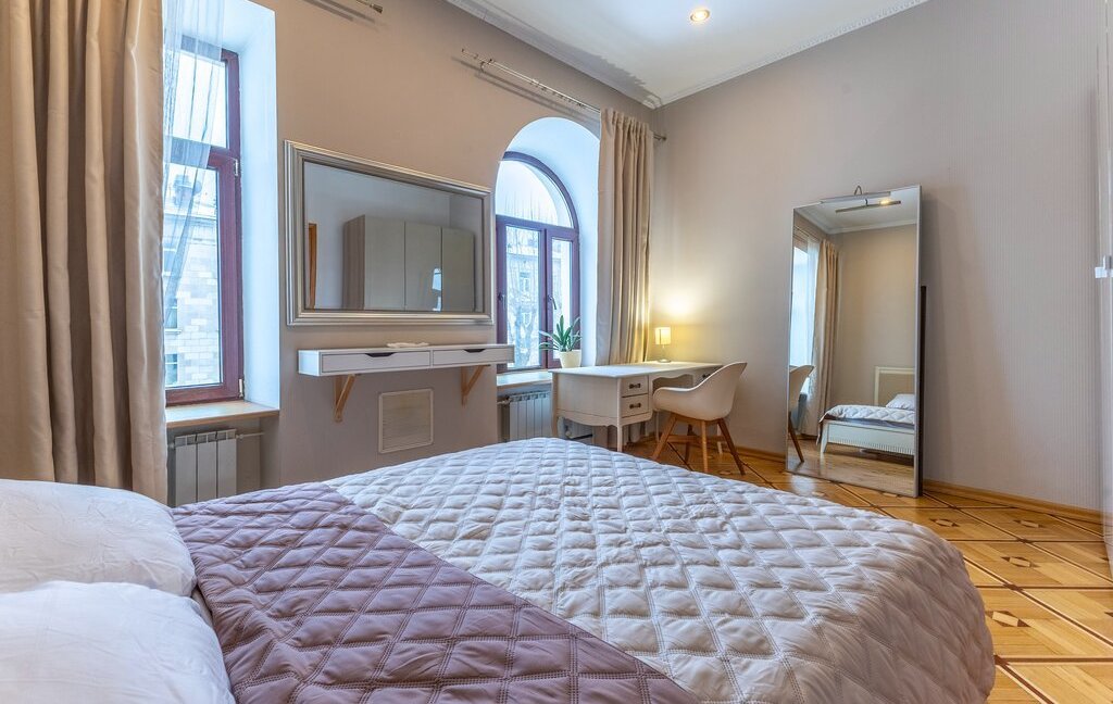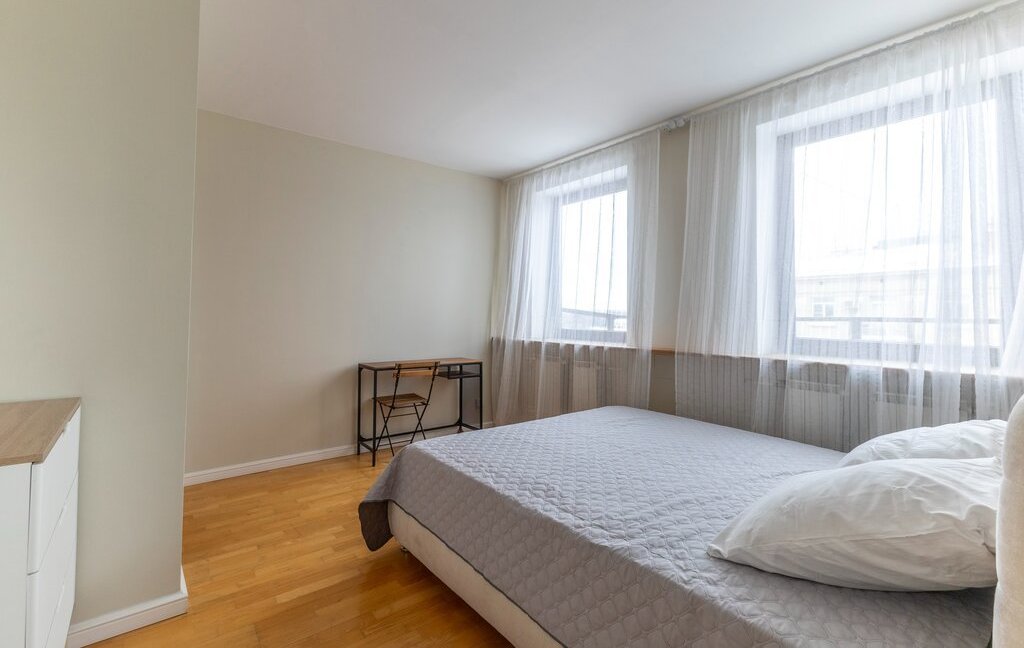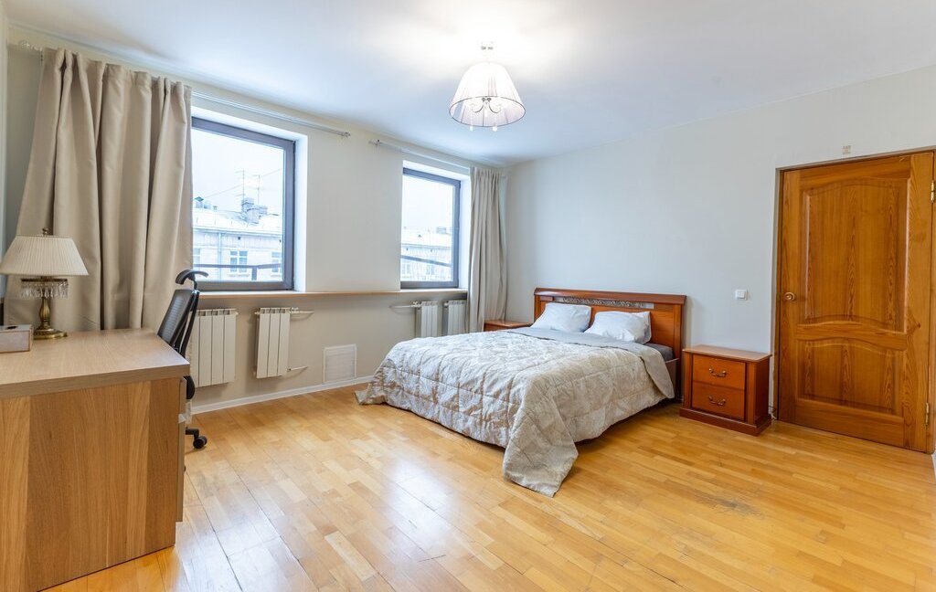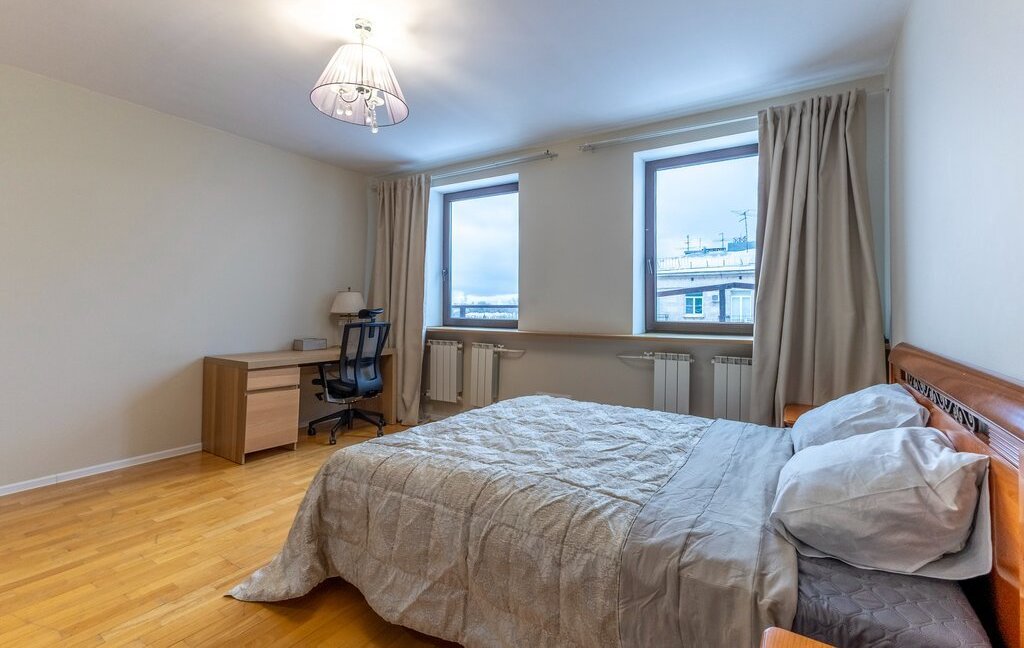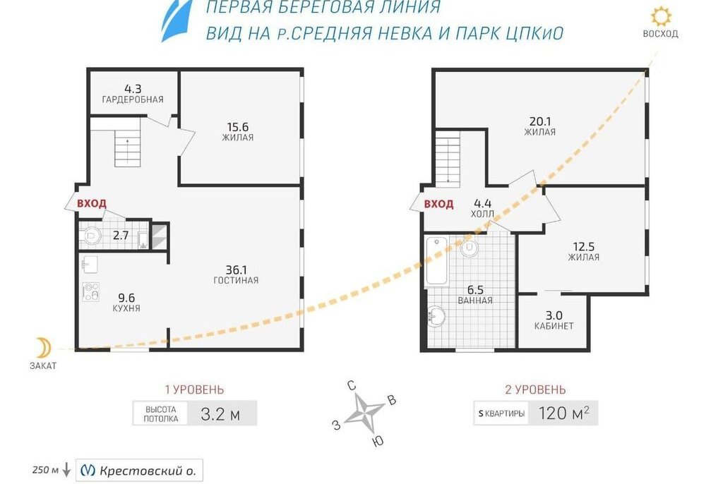 Сдаётся светлая двухуровневая квартира с прямым видом на акваторию Средней Невки и Елагин остров. Дом расположен в тихой части Крестовского острова - одной из самых востребованных локаций Санкт-Петербурга.