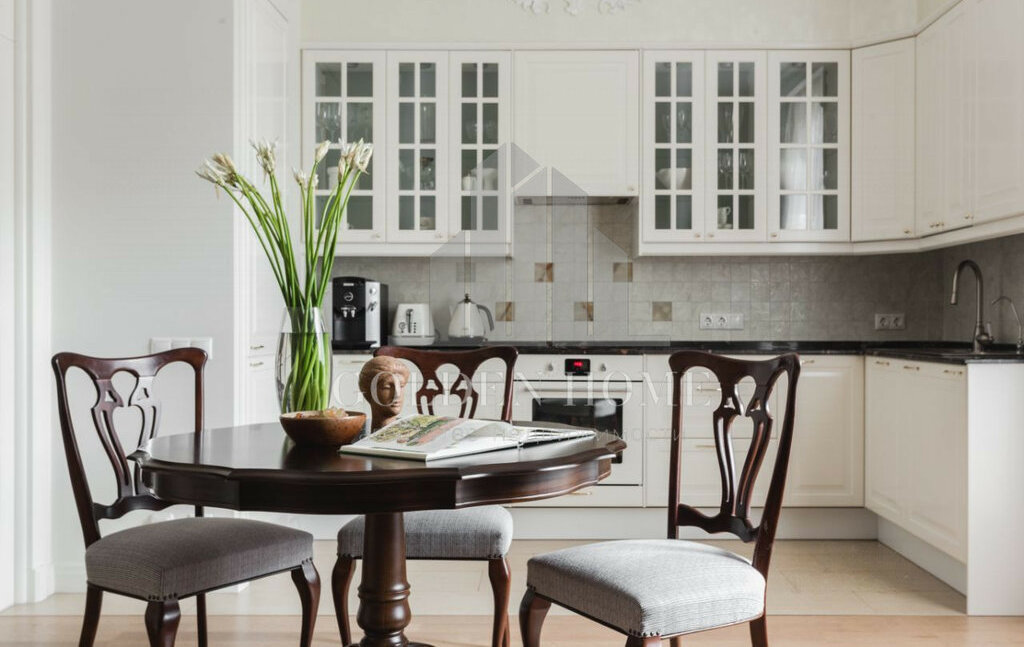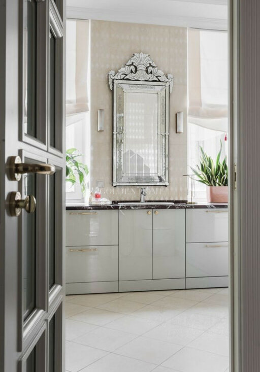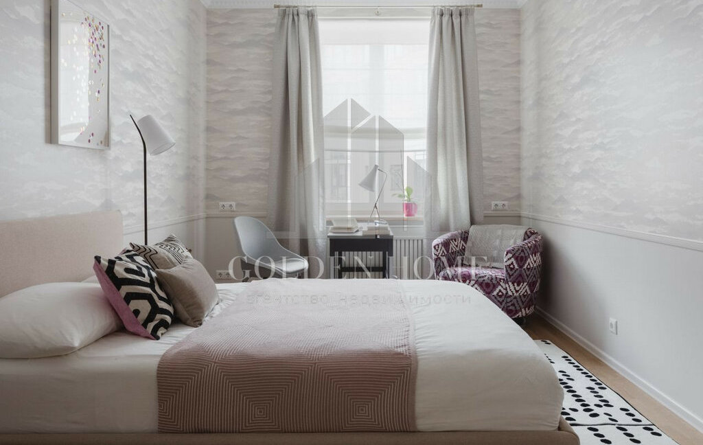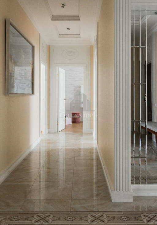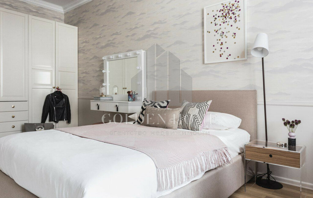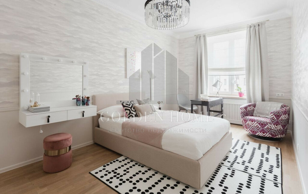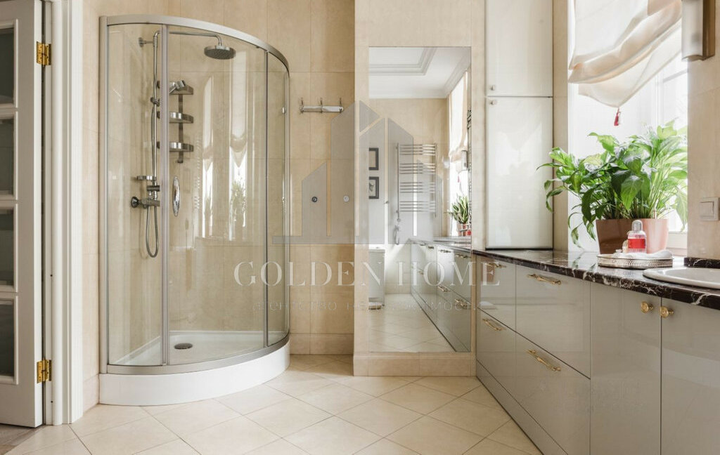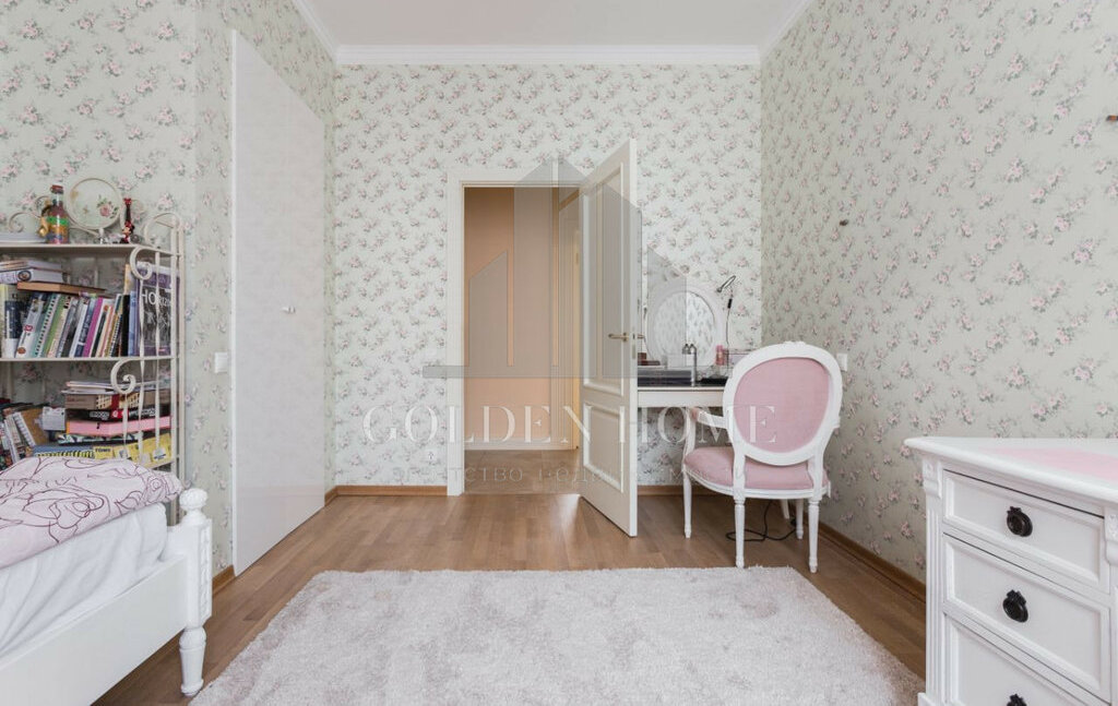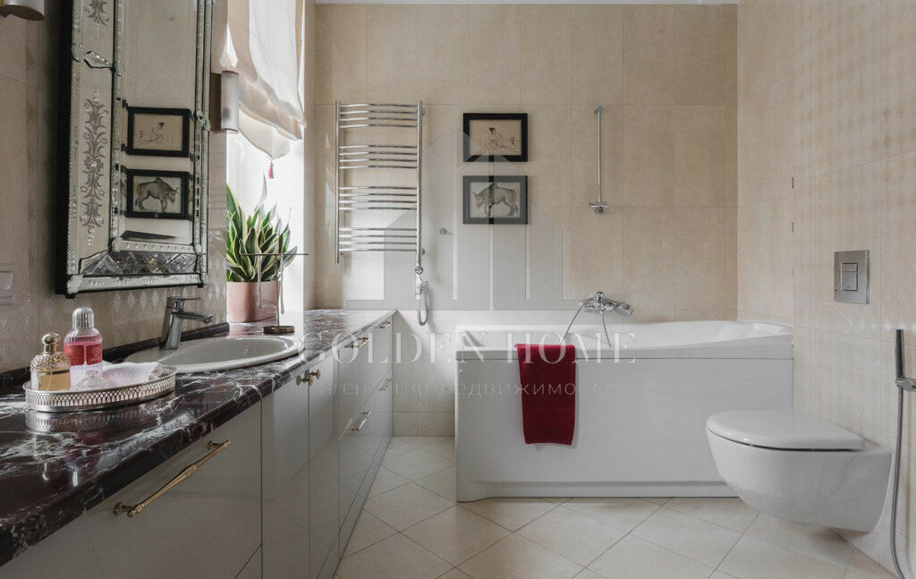 Очень тихая и светлая современная просторная квартира с продуманной планировкой и отличным ремонтом: кухня-гостиная с балконом, большая спальня с гардеробной и лоджией, две детские комнаты, большая ванная комната с двумя окнами, три гардеробных, гостевой санузел.