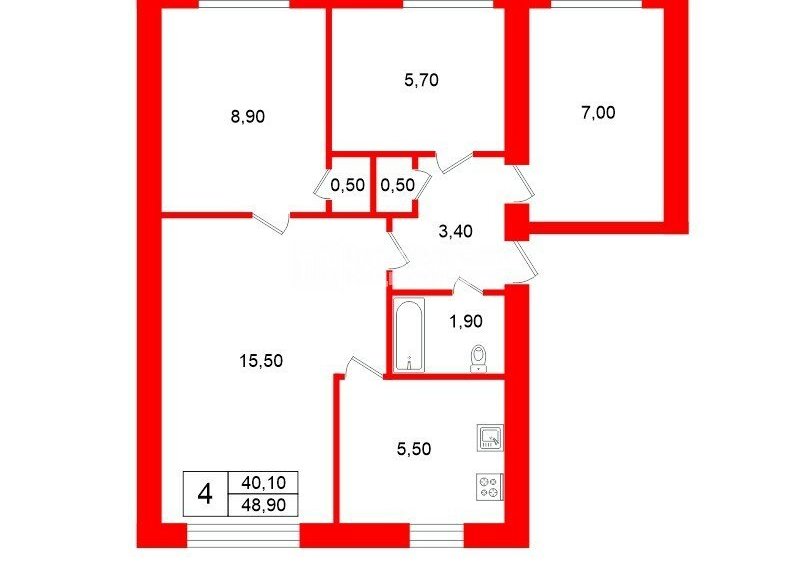 4-комнатная квартира: Санкт-Петербург, Трамвайный проспект, 19к1 (48.9 м²)