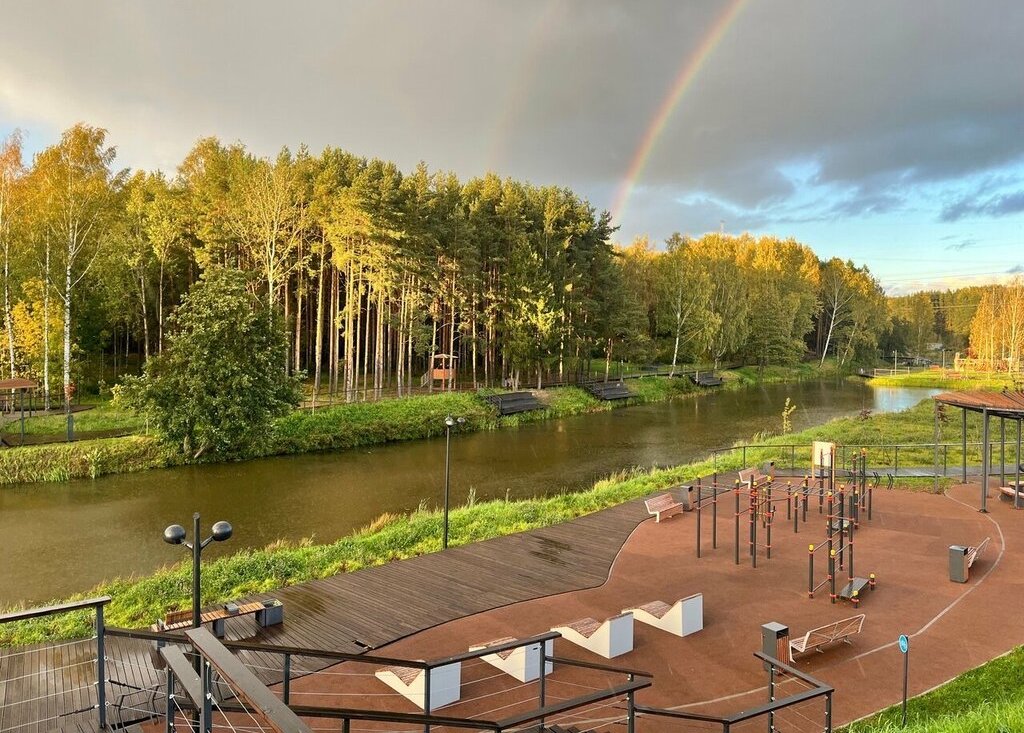 ✨ Через дорогу Ржевский лесопарк - настоящий лесной массив в черте города, где можно побыть наедине с природой, заняться спортом или насладиться отдыхом в обустроенных зонах с шезлонгами и гамаками.