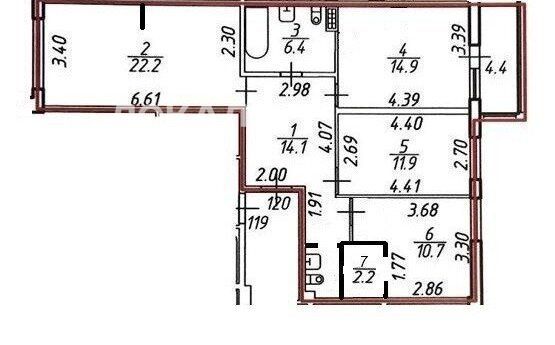 4-комнатная квартира: Санкт-Петербург, улица Композиторов, 12 (88.8 м²)