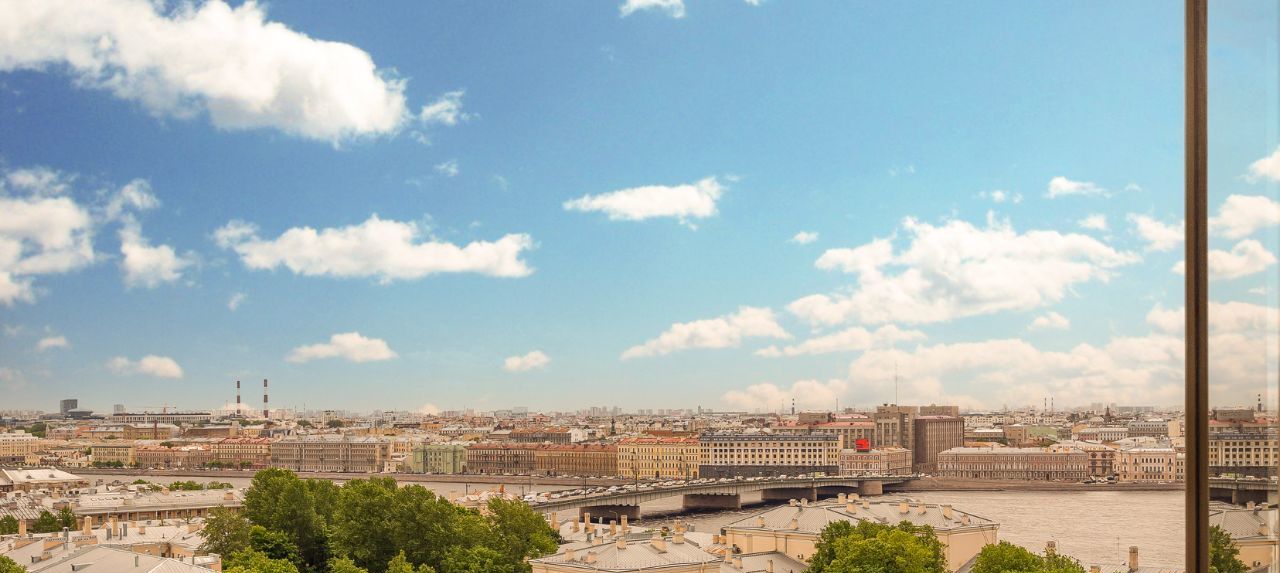 Из окон открывается вид на две стороны, на город, Неву и Литейный мост.