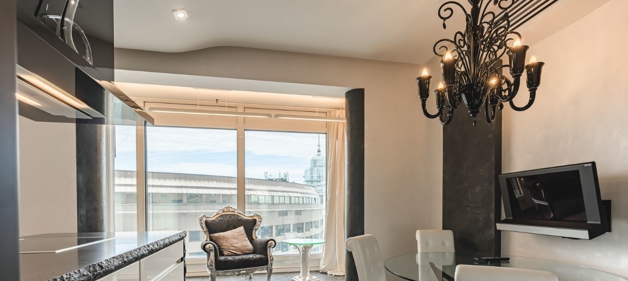 ID 45160. Предлагается в аренду эксклюзивная 2-уровневая квартира в премиальном ЖК у Пироговской набережной. Авторский дизайн в стиле ар-деко. Отделка выполнена из высококачественных и натуральных материалов.