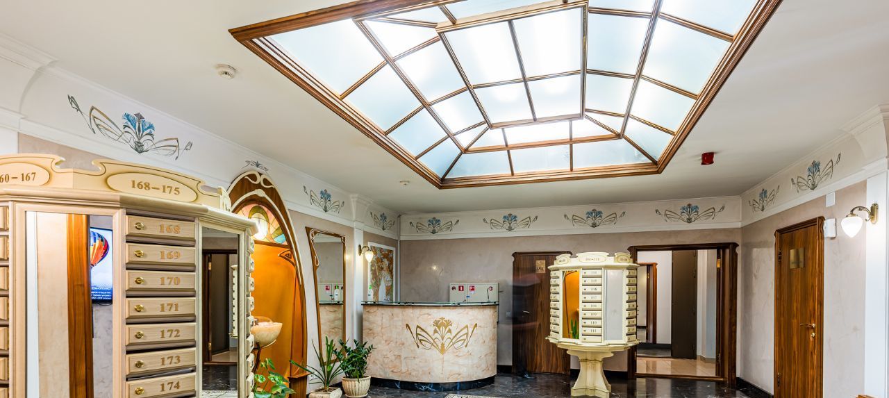 Дом имеет закрытую территорию с уютным садиком, детской площадкой и фонтаном. Доступ на территорию, к лифтам и на этаж с помощью магнитного ключа. На первом этаже лобби с круглосуточной службой консьержей. Для комфортного проживания в ЖК имеется собственная автоматическая котельная, система видеонаблюдения, подземный паркинг.
