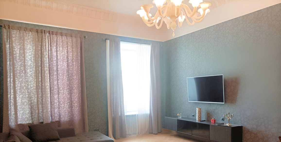 Кухня 18, 9 метров гостинная 30 метров. Две детские. Спальня и кабинет. Высота потолка 3, 7 метра! Квартира фасадная. Окна на Гороховую улицу.