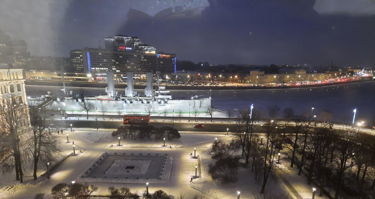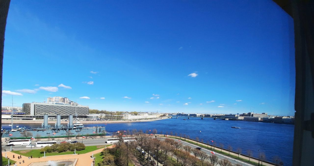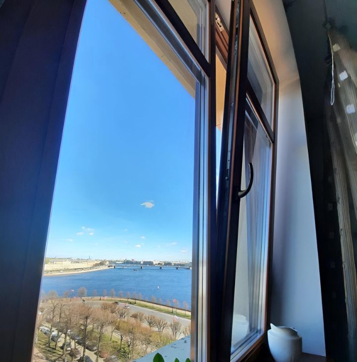 Из окон квартиры открывается неповторимый в любое время вид на акваторию Невы, крейсер Аврора, часть Петропавловского собора(фото оригинальные из окон).
