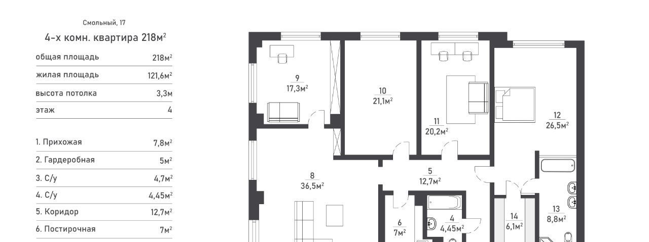 5 квартира 218 м²;