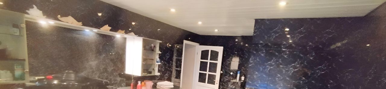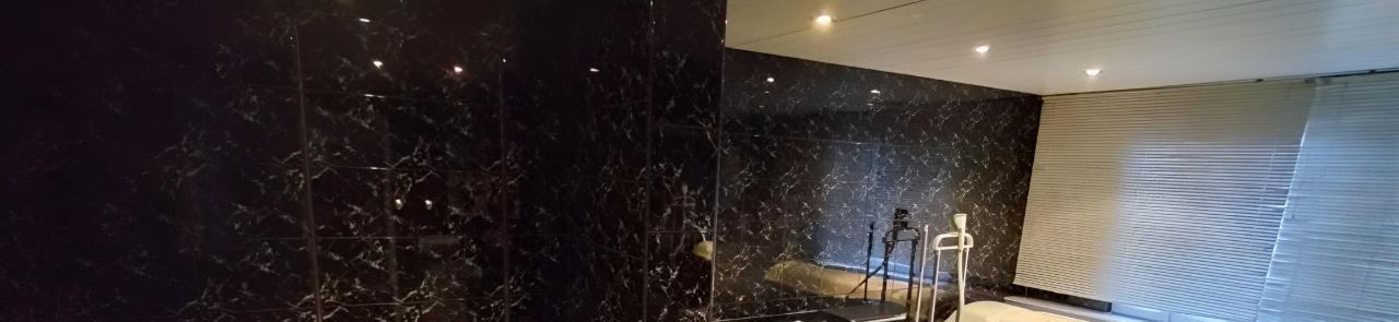 Ванная комната выполнена в стильном дизайне с раздельным санузлом. Тут установлена итальянская (Jacuzzi) ванна джакузи с гидромассажом, горизонтальный солярий Solana (Швеция), стиральная машина на 6 кг, биде, сдвоенный умывальник с огромным зеркалом и подсветкой. На случай отключения горячей воды летом установлен электрический бойлер.