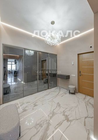 Квартира состоит из 3 спален, 1 кабинета, кухня-столовая совмещёна с гостиной, 3 санузла, 2 гардеробные и 1 постирочной.