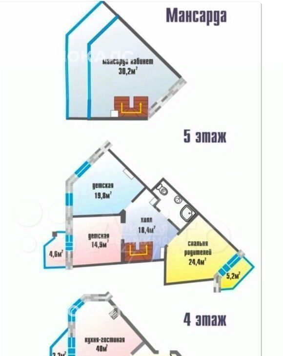 шесть изолированных комнат, которые можно использовать как спальни, кабинеты, детские или зоны отдыха;