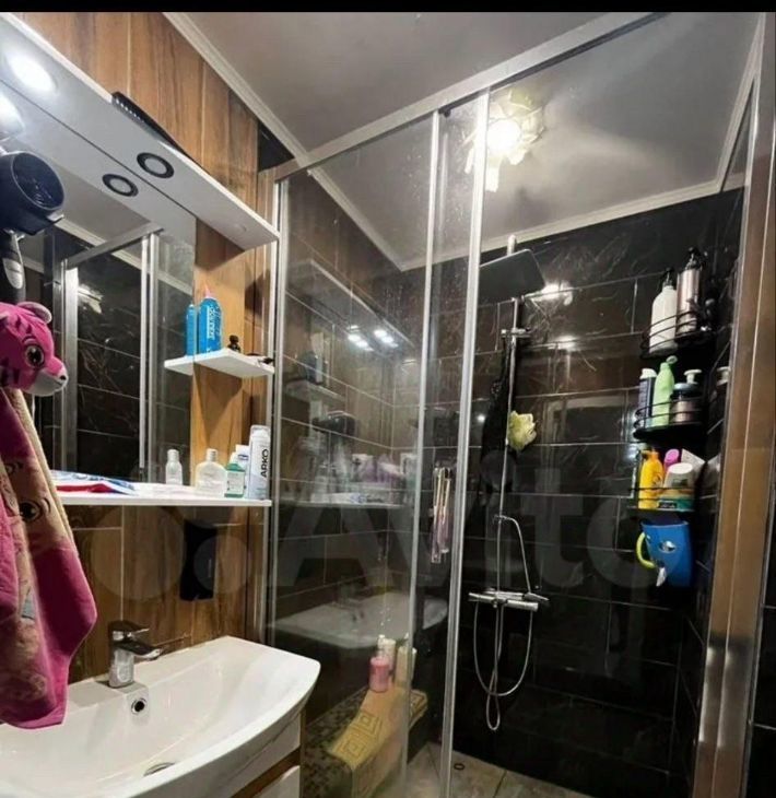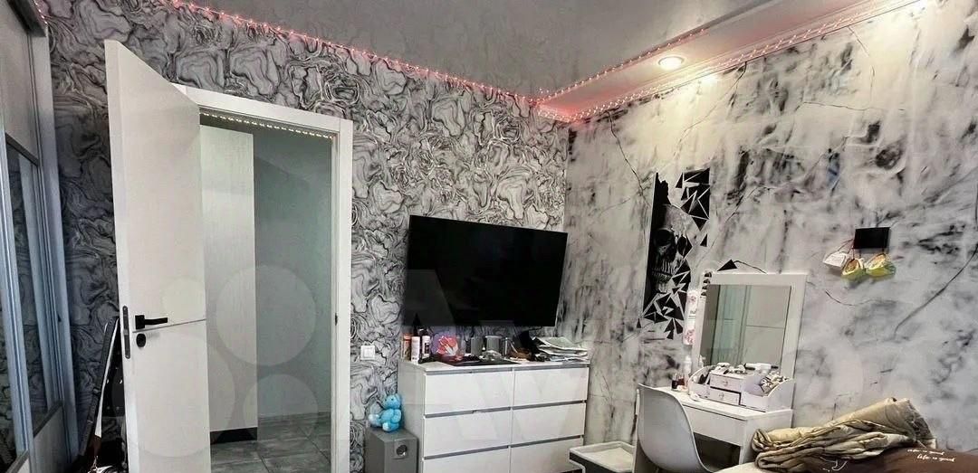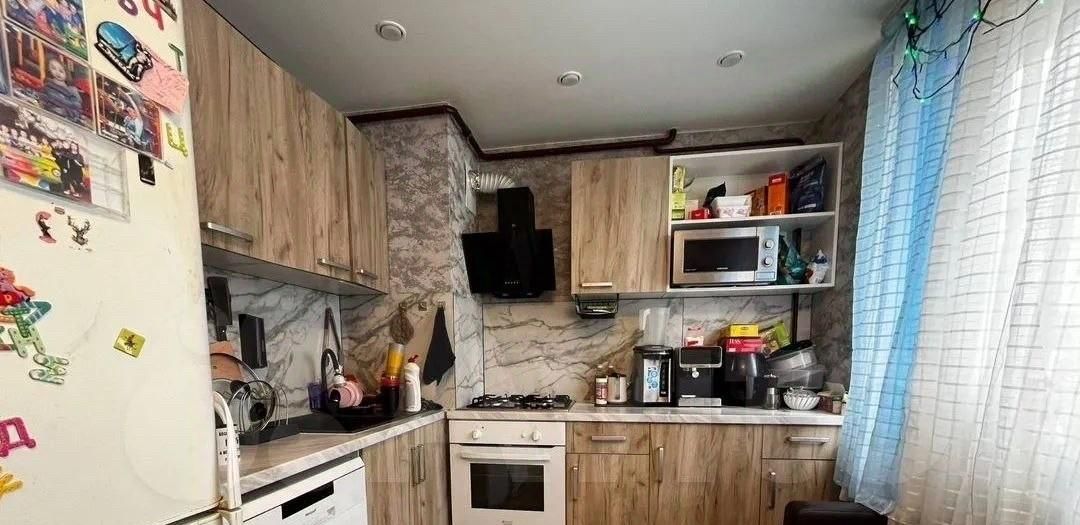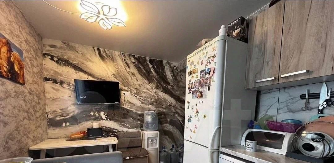Кухня площадью 10 мг оборудована необходимой техникой, включая холодильник и плиту. Ванная комната с раздельным санузлом оформлена стильными плитками. В квартире выполнен косметический ремонт, стены украшены оригинальными обоями.