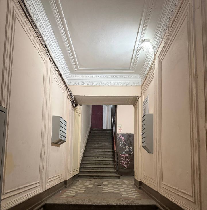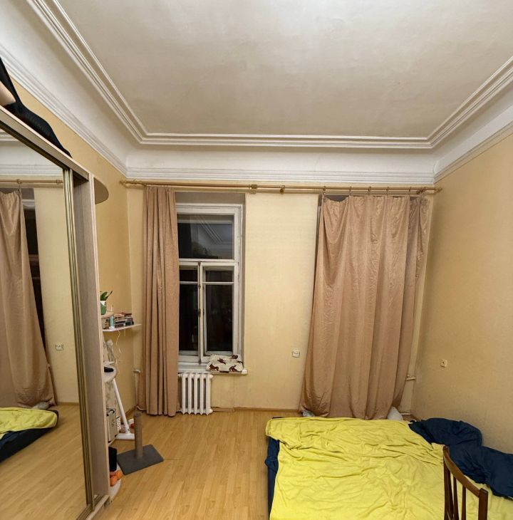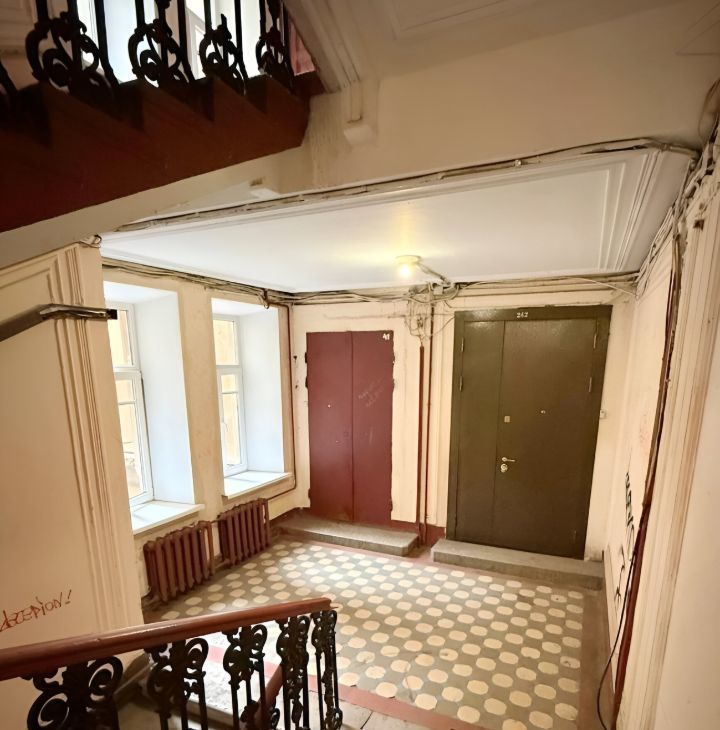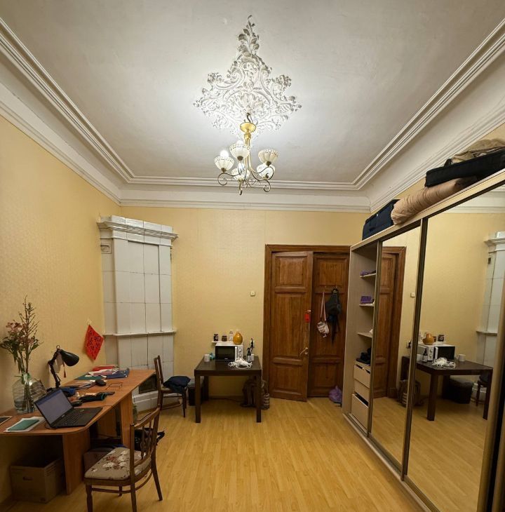 У комнаты отдельный тамбур на 2е комнаты с дверью. Окна в спокойный двор. Сохранили историческую лепнину и реставрировали латунные замки окон (предлагали даже выкупить). За состоянием общих мест пользования внимательно следят сами жильцы.