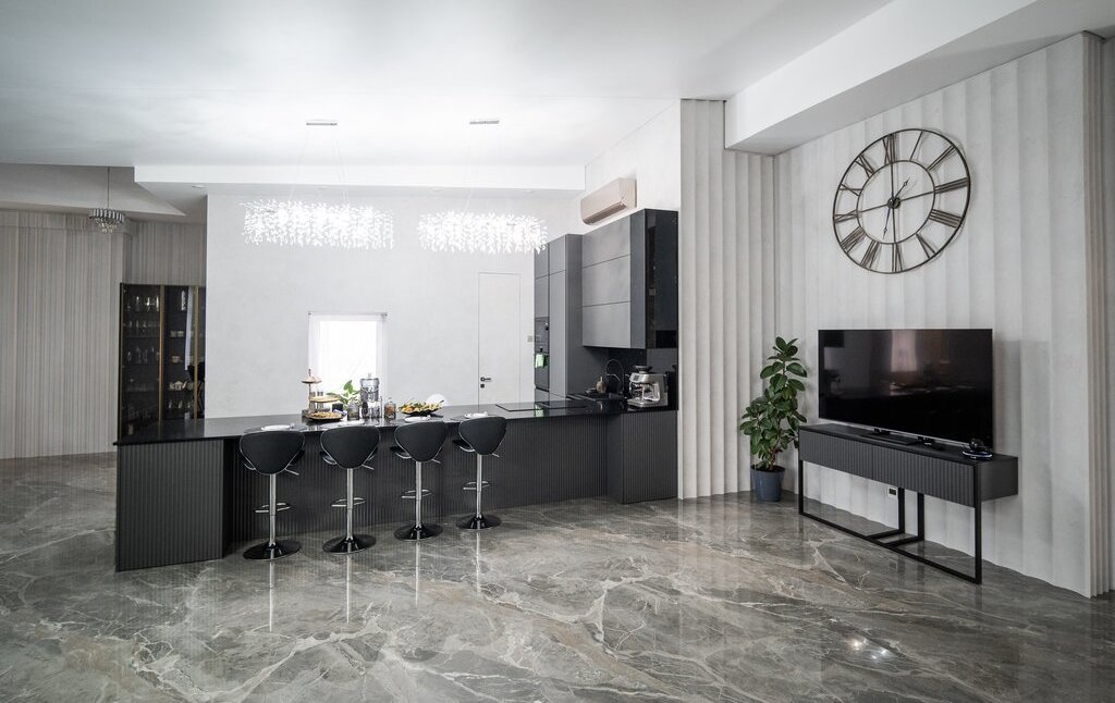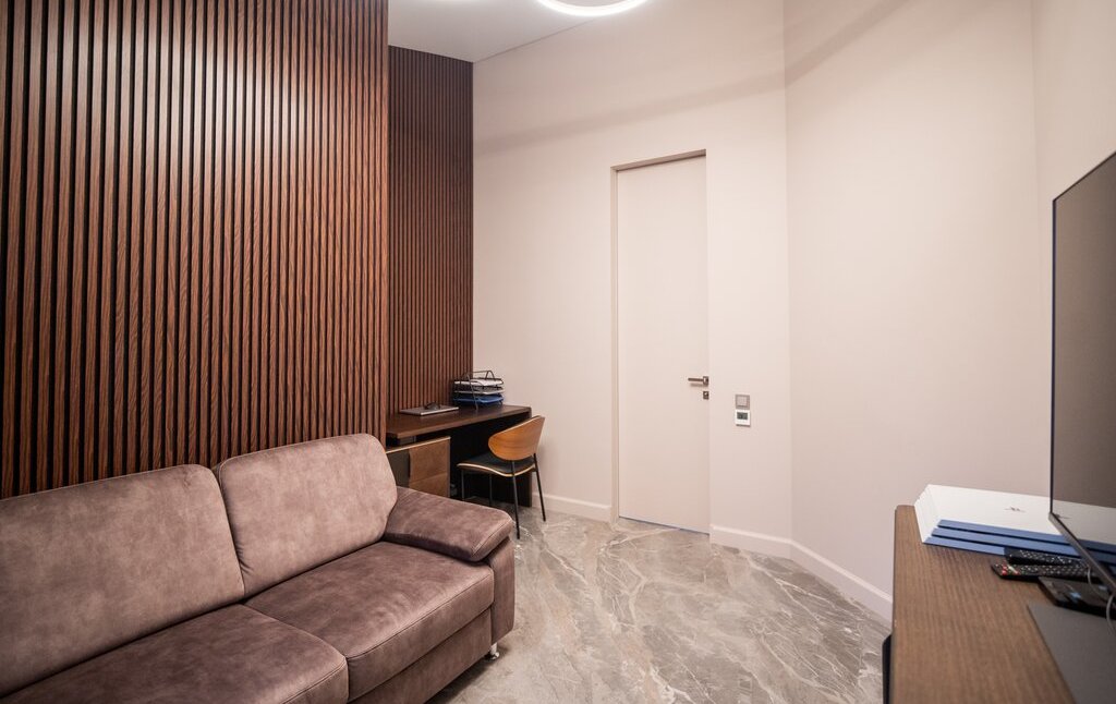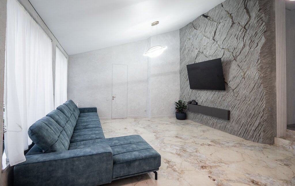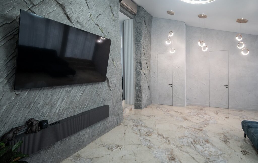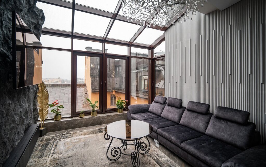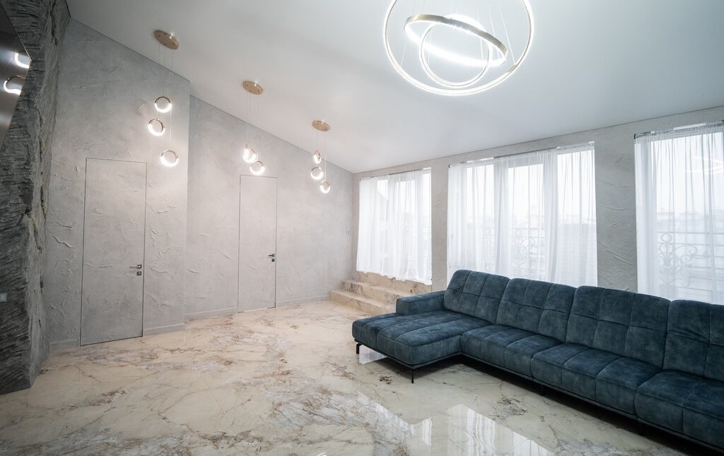 В квартире выполнен современный и качественный дизайнерский ремонт в 2025 г. Новое абсолютно все, от коммуникаций до стен, потолков и перекрытий, новая проводка, теплый пол. Квартира полностью мебелирована и обставлена дорогой европейской мебелью. Высота потолков максимальная 4,7 м, минимальная 3,0 (мансарда).