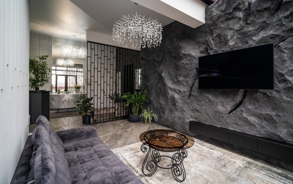 Продуманная планировка делит квартиру на три функциональные зоны, приватную зону спален с окнами во двор, коридор оснащен окнами выходят на ул. Чернышевского, большая гостевая гостиная-столовая, с зоной отдыха стена в которой выполнена в технике имитации скального рельефа, и хозяйская гостиная с зоной отдыха и огромной скалой, с выходом на террасу на ул. Чайковского. На террасе положена доска, установлен блок кондиционера. В квартире панорамные окна и виды на три стороны света и красоты Петербурга. Три отдельных сан. узла с современной сантехникой и оборудованные умными японскими унитазами. Две просторные гардеробные комнаты, отдельный хоз. блок- постирочная, оборудованная новой бытовой техникой . Просторная кухонная зона с каменной столешницей и островом который вмещает в себя всю кухо