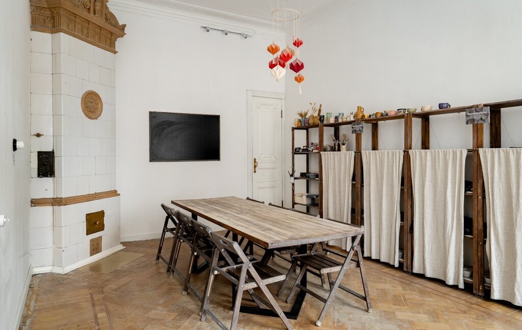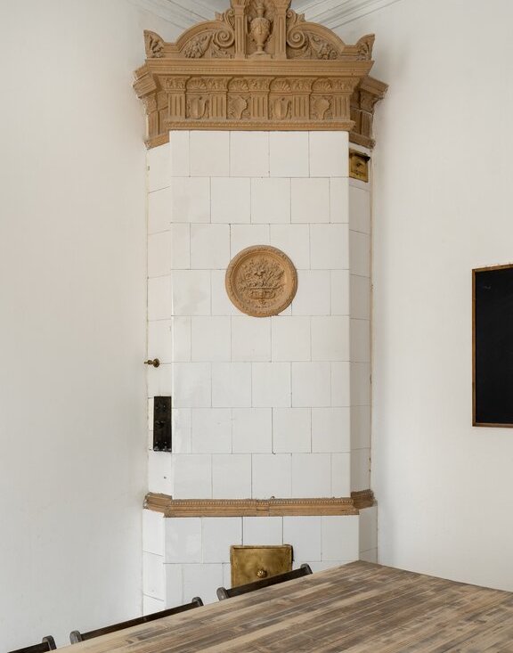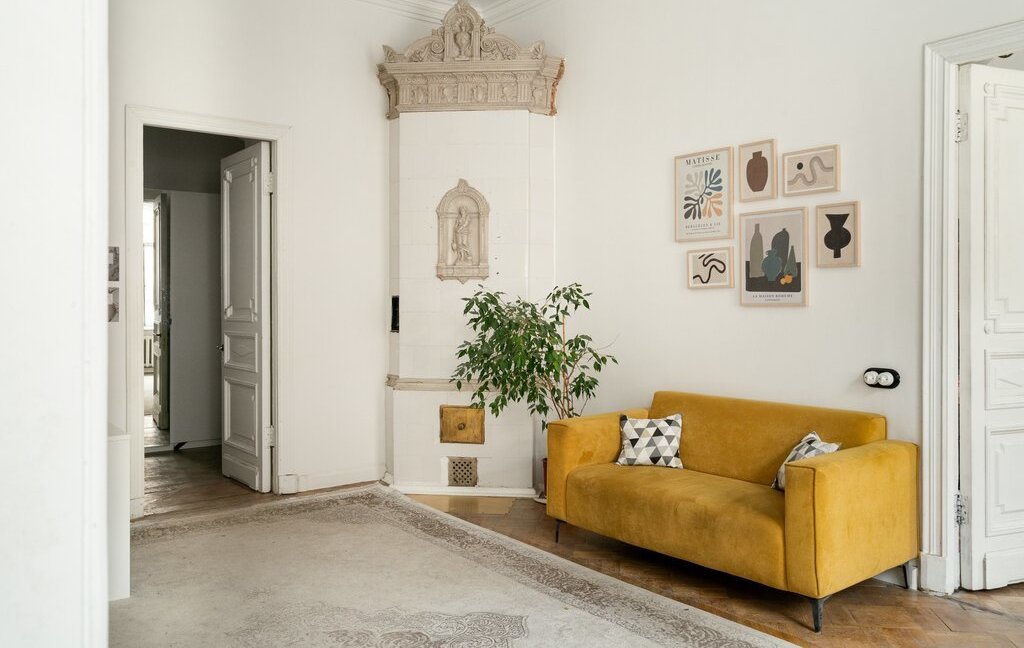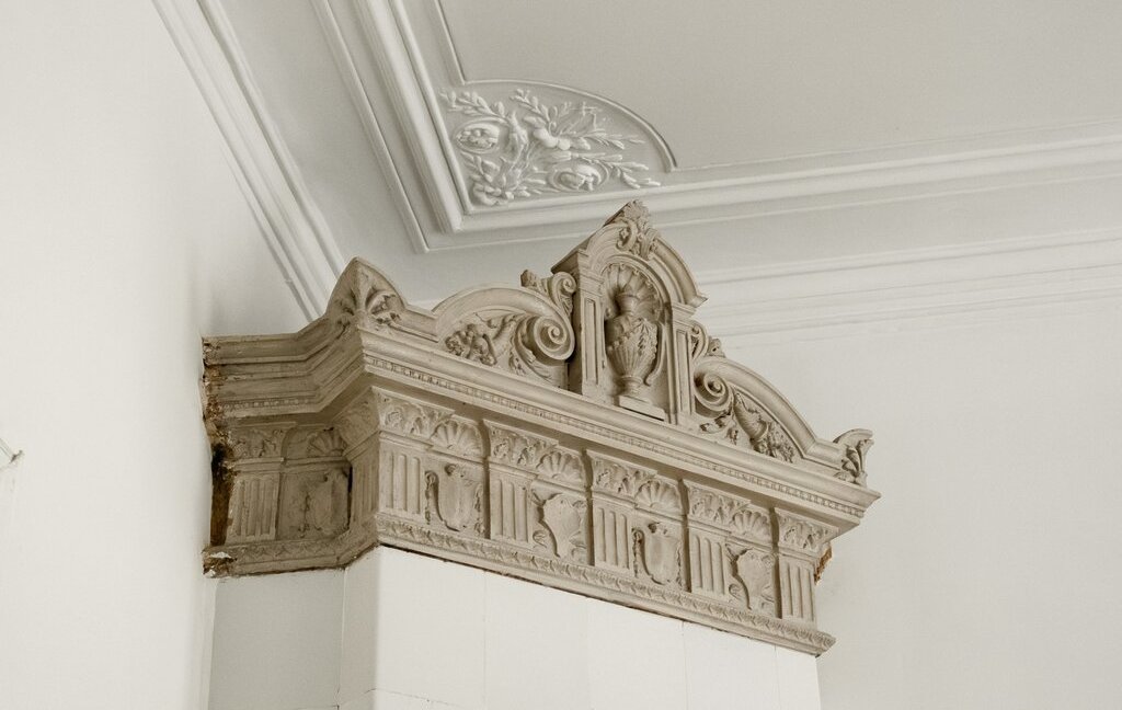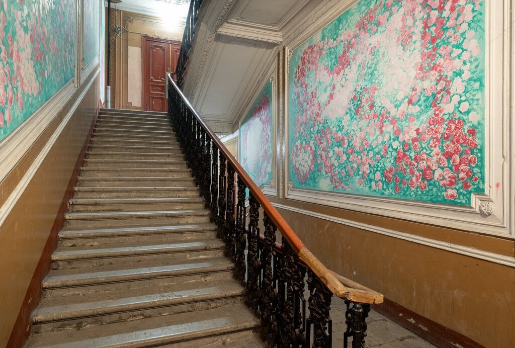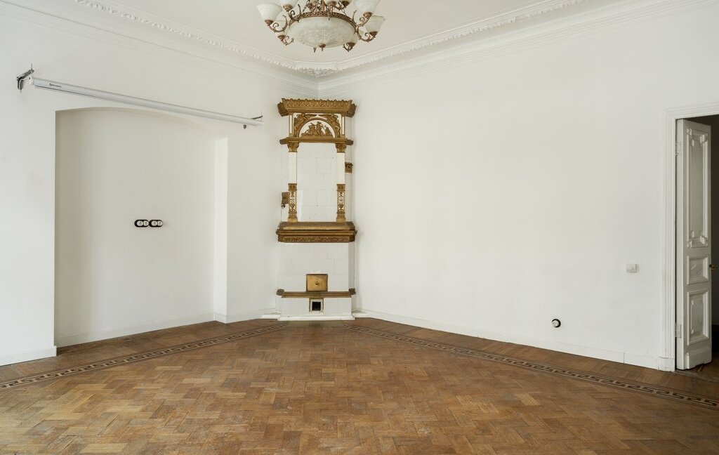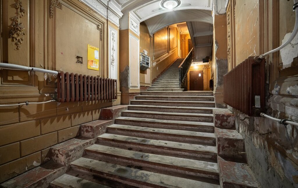 В парадной требуется ремонт, но в ней сохранилась печь, дубовые двери и лепнина. Лифта нет.