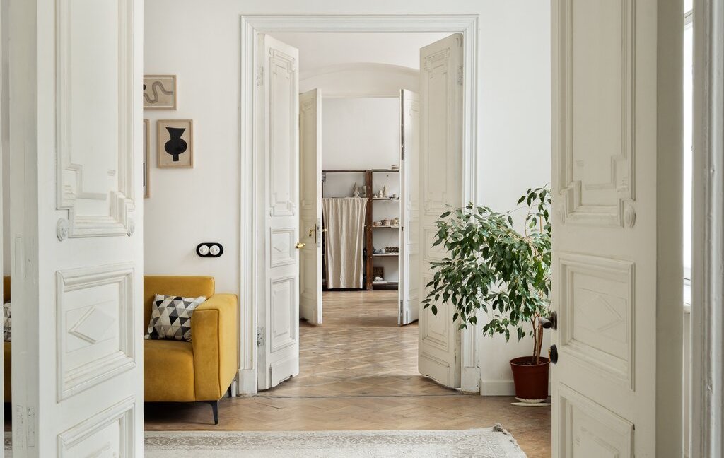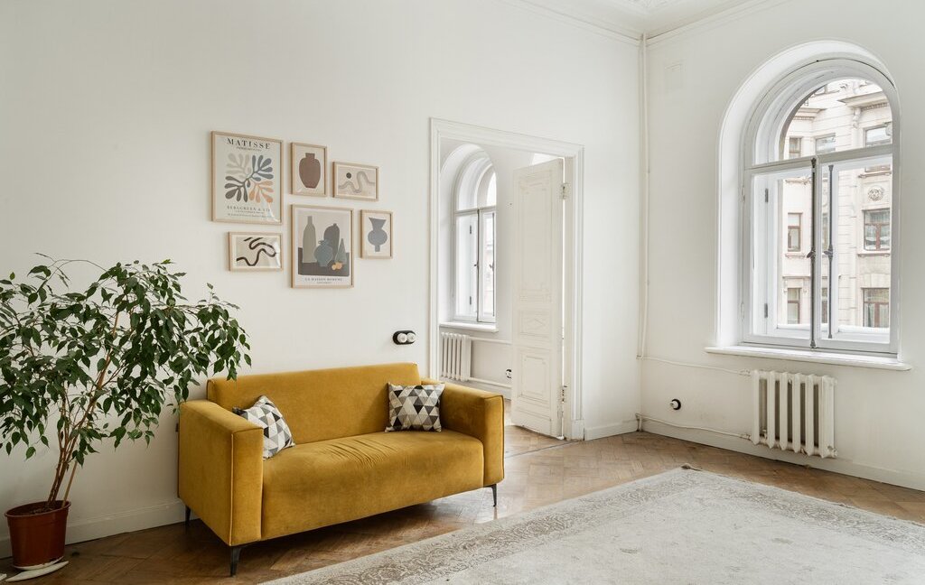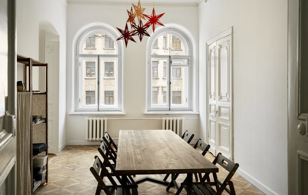 В квартире 8 арочных окон с видом на улицу Марата, исторические двери и лепнина. К каждому окну подобрана оригинальная фурнитура. Все двери и лепнина после бережной реставрации. Сохранился старинный художественный дубовый паркет.