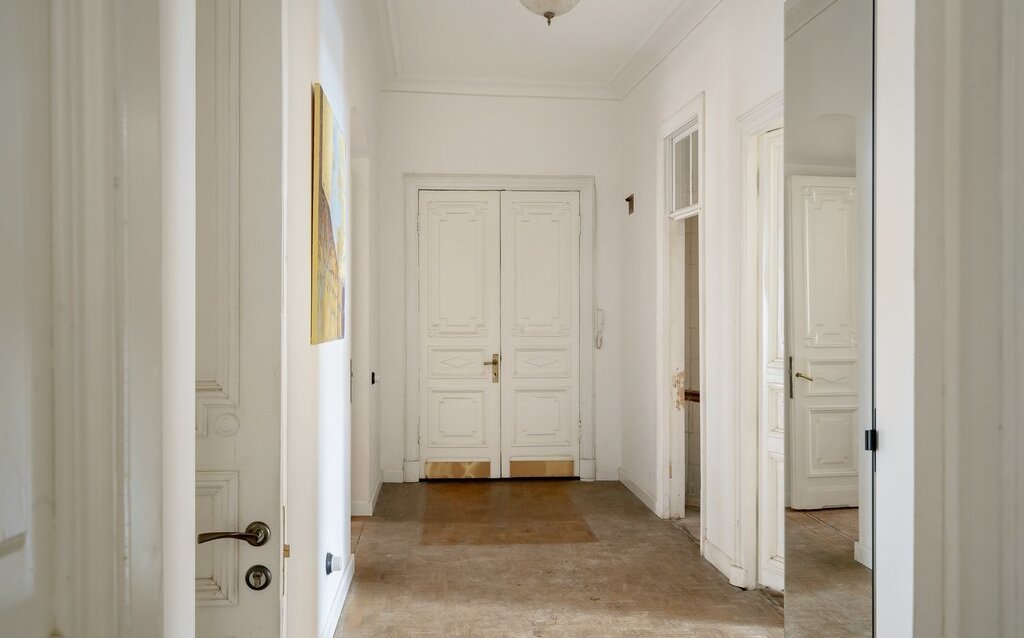Квартира находится на престижном “барском” третьем этаже. 4 парадные комнаты объединяет анфиладный проход. В парадных залах высота потолков 3.7 метра, а в комнатах с видом во двор — 3.3.