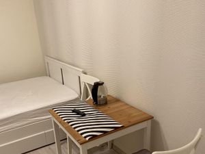 Техника: холодильник, стиральная машина, микроволновка, электрическая плитка на 2 конфорки, электрический чайник, Wi-Fi. На кухне — свой угол, отдельный от соседей.