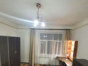 В комнате сделан качественный евро ремонт: на полу ковролин, стены оклеены виниловыми обоями в светлых тонах, старое окно заменено на пластиковое.