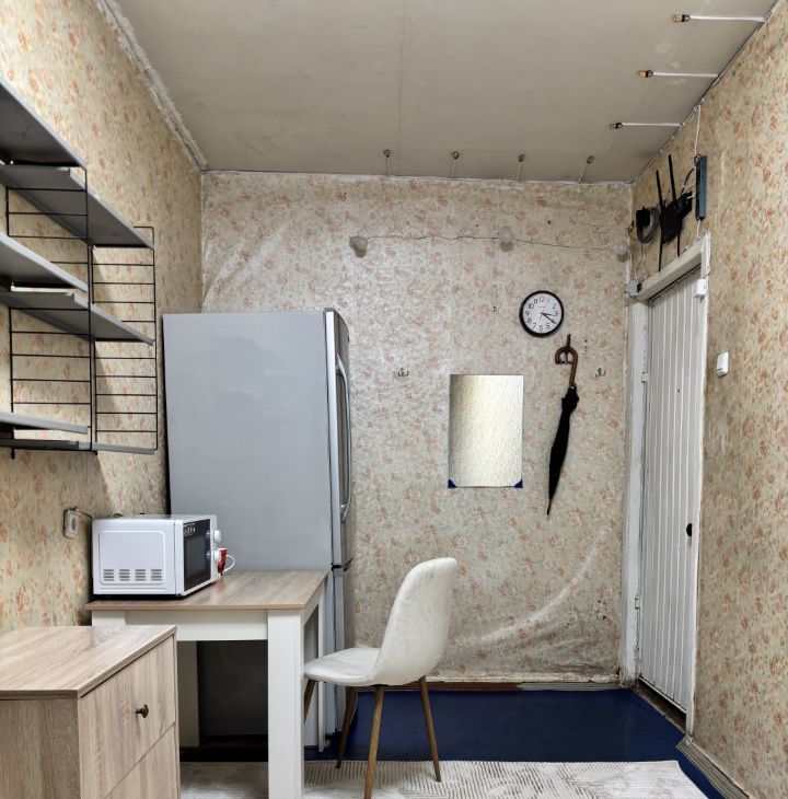 В комнате новая мебель, большая кровать с ортопедическим матрасом. Из техники доступно к пользованию: плита, личная стиральная машина, мультиварка, личный холодильник, личная микроволновка, электрический чайник. Есть новая сушилка для белья. Также доступен WI-FI.