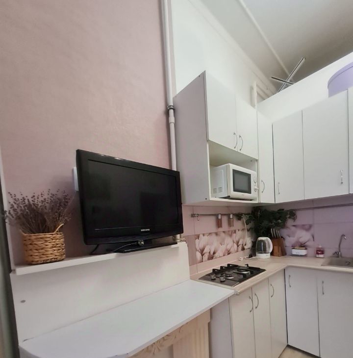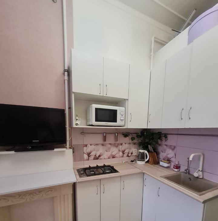 Сдается на длительный срок. При коротком сроке от месяца, цена аренды будет выше. Комната очень уютная, расположена в центре города, на третьем этаже, с отдельным входом. Вся мебель и техника современные. Есть вместительный встроенный шкаф, диван - кровать для отдыха и сна. Кухня встроенная с плитой, свч, мильтиваркой, электрич.чайником, тостером. Есть холодильник, стиральная машинка и телевизор. На своей кухне обеденный стол со стульями. Дополнительно есть утюг, посуда, постельное белье, доска гладильная и сушильная доска, пылесос, бойлер и фильтр очистки воды. В квартире два санузла и ванная.