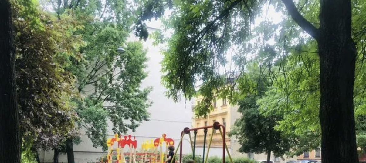 12ая линия В. О. 23а, дом стоит в углублении двора, нет шума от проезжей части. Двор зеленый с детской площадкой. Соседние дома отреставрированы .