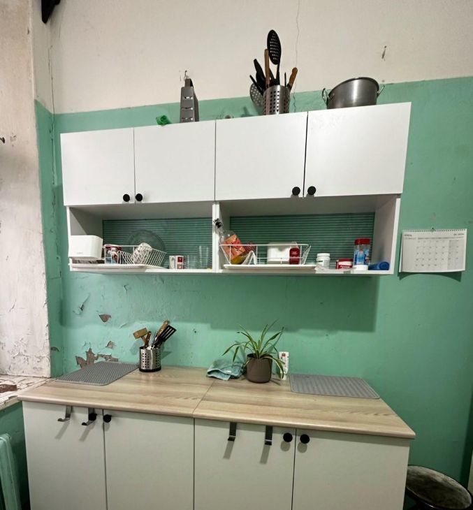 В квартире сдаются только две комнаты, в остальных комнатах никто не живет. Комната оснащена всей мебелью, на кухне свой стол. Холодильник, микроволновая печь, газовая плита и стиральная машина в пользовании на две комнаты. Места общего пользования потихоньку ремонтируются. Если нужен wi-fi, то есть модем для него и проведен кабель в квартиру, можно будет подключить.
