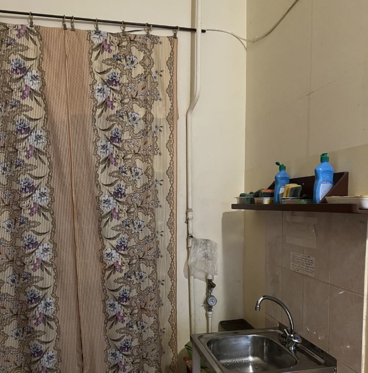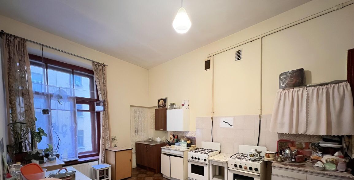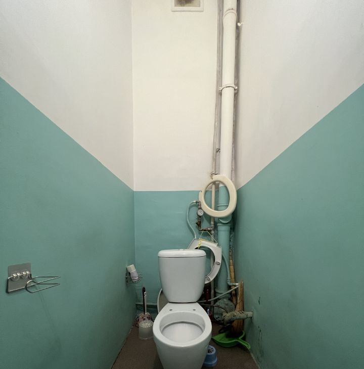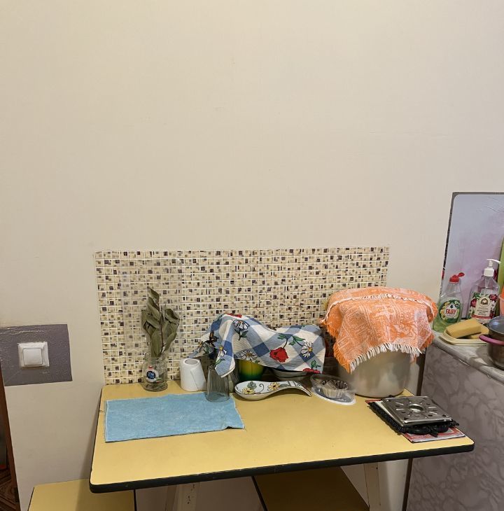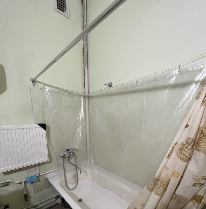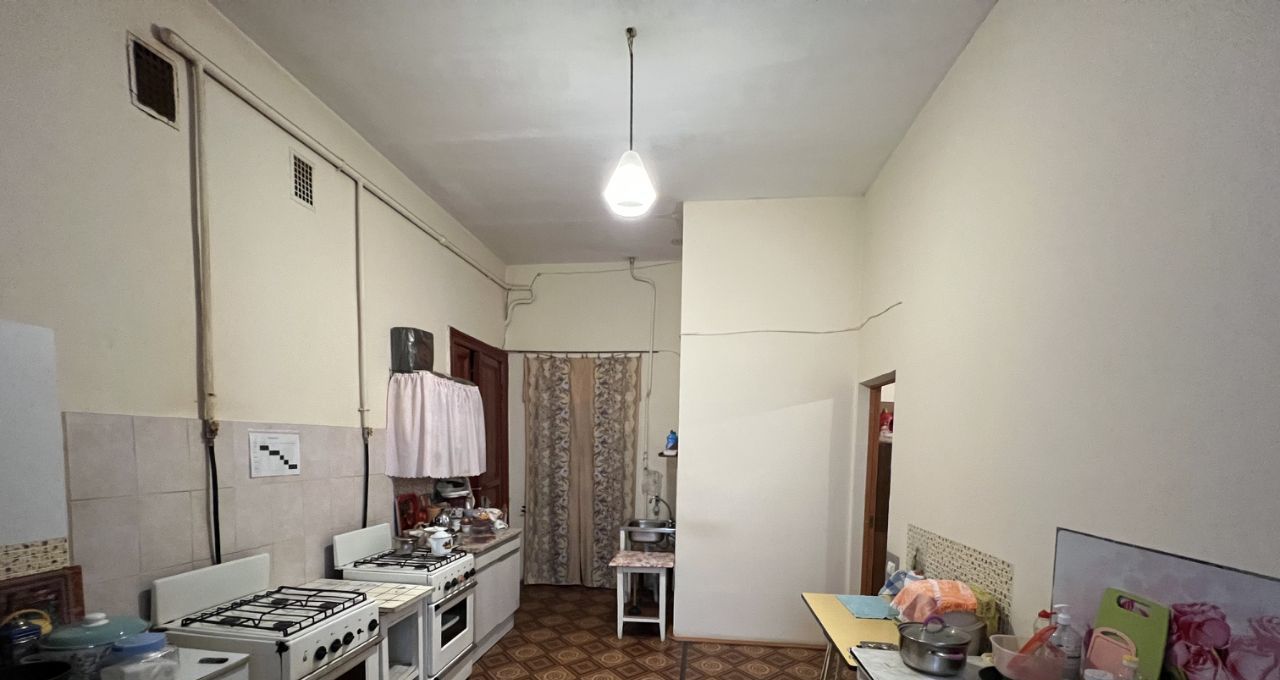 Квартира расположена на 3 этаже, имеет большую кухню около 30 кв. метров, 2 туалета, одну ванную комнату. На кухне 2 газовых плиты, раковина, свое место для готовки и хранения посуды. Соседи тихие, проживает 9 человек, в основном женщины. Места общего пользования в чистом состоянии. Есть график уборки мест общего пользования.