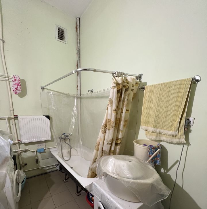 Комната теплая. Окно комнаты выходит во двор. Есть необходимая мебель, холодильник, телевизор, микроволновая печь, личная стиральная машинка ( в ванной комнате ).